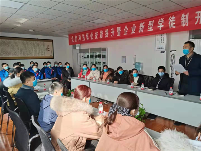 张凯主任在讲话中介绍了学校情况,强调贯彻落实党的十九大精神,持续深化产教融合,加快建设知识型、技能型、创新型劳动者大军,积极探索新型学徒制合作模式,我校走在省内同类学校前列。培训期间校企双方会相互协作、资源共享、优势互补、不断提高合作水平,共同培养优秀的职业技能人才。同时我校将积极响应政府号召,坚持送训入企、不断探索和实践产教融合共同发展之路,及时总结经验,努力把新型学徒制培训做深、做实、做好,为行业和企业培养高素质的技术技能人才,为区域经济和社会发展做出更大的贡献!