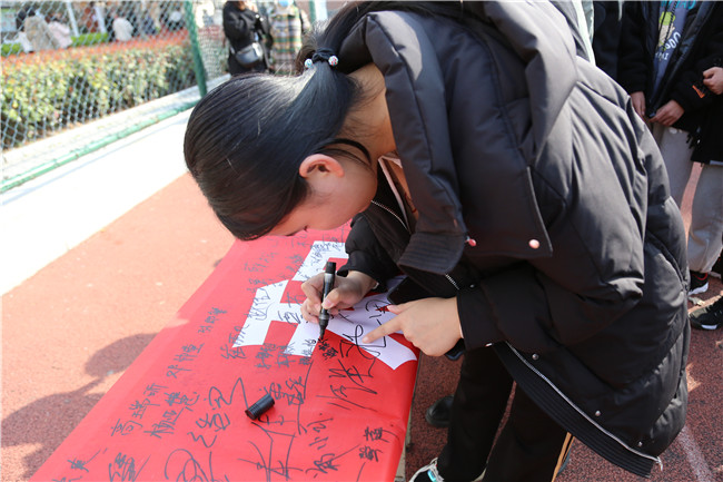 最后全体学生在班主任引导下在条幅上郑重地签上自己的名字,让它时刻监督自己,从一点一滴小事做起,告别原有陋习,秉承文明火炬,坚决做到“六个不”:即“不吸一支香烟、不说一句脏话、不乱扔一张纸、不敷衍一次早操、 不虚度一课时、不逃避一次劳动”,争做文明学生,共同打造和谐、文明、美好的校园环境!