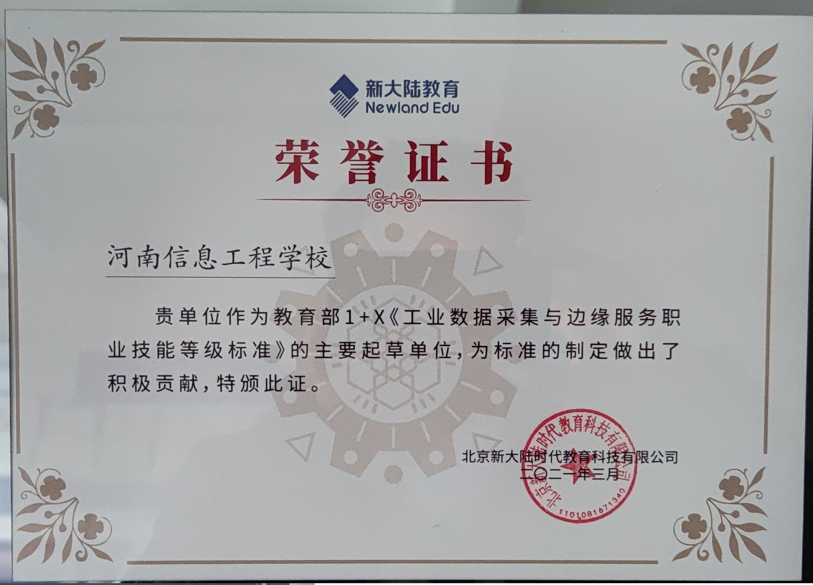 为深入贯彻落实《国家职业教育改革实施方案》、《关于在院校实施“学历证书+若干职业技能等级证书”制度试点方案》精神,积极响应国家号召,2021年3月18 日,由北京新大陆时代教育科技有限公司主办的1+X物联网工程实施与运维、工业数据采集与边缘服务职业技能等级证书说明会在福建福州隆重举行,来自全国各地职业院校、行业龙头企业的近150位专家、教师参加了本次说明会。本次说明会上成立了1+X工业数据采集与边缘服务职业技能委员会,河南信息工程学校被评价机构确定为等级证书标准起草单位,教务处兼电子工程系主任史娟芬聘为主要起草人。在今后,我校将积极参与指导工业数据采集与边缘服务职业技能等级证书教材编写、资源开发、师资培训具体落地实施培训及考核工作。