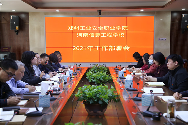 最后,黄磊校长对2021年两校工作进行了重点部署,要抓好全面从严治党、党史学习教育、两校融合发展、两校五年规划、专业群建设、校企合作、招生、技能竞赛、学生管理、信息化建设、民生服务等12项重点工作。为了加大两校融合发展力度,近期两校成立了两校融合工作协调办公室、信息服务中心、招生就业服务中心、培训中心、后勤服务中心、技能大赛办公室等6个综合部门,推进两校融合工作的开展。2021年两校的工作思路已经理清,工作方向已经明确,关键在落实,要说到实处,干到实处,落实到实处,以党建高质量推动两校融合发展的高质量,献礼建党100周年!