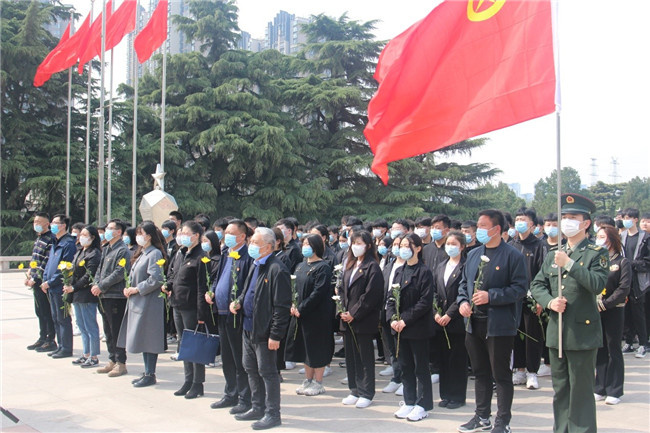 一寸山河一寸血,一抔热土一抔魂。为庆祝中国共产党成立100周年,深入开展党史学习教育活动,缅怀英雄先烈,讴歌民族英雄,传承红色基因,激发我校师生爱党爱国情怀,4月6日,在宋廷楷副校长的带领下,我校党员代表和团员青年代表150人,抵达郑州烈士陵园,开展了“缅怀英烈,铭记英雄”清明祭英烈主题活动。