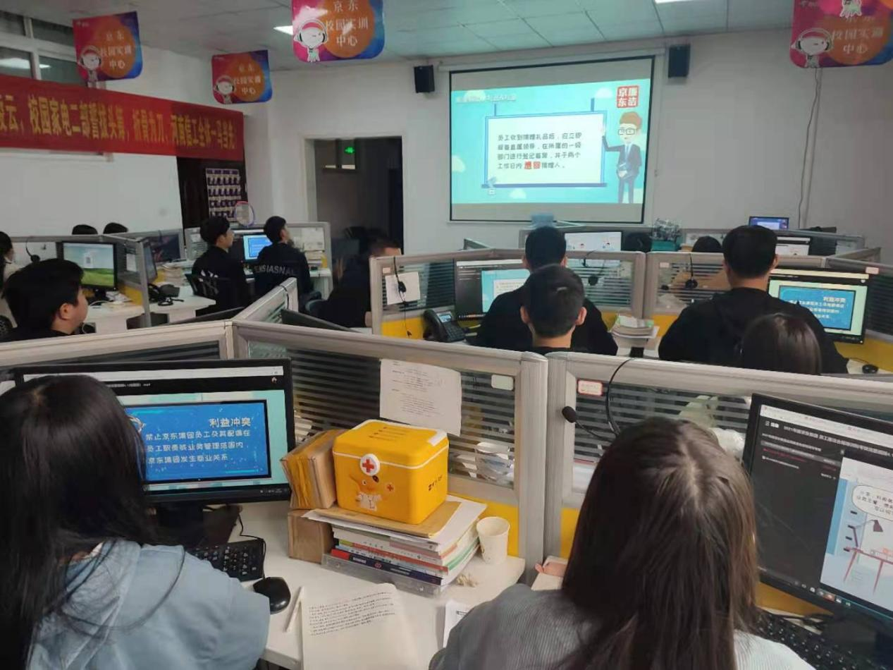 为保证本学期京东校园实训中心实训工作的正常进行,本学期我系组织电商19级京东班、电商20级部分学生利用晚自习时间进行京东客服实战训练。经过几周的实训学习,学生均取得了长足的进步。