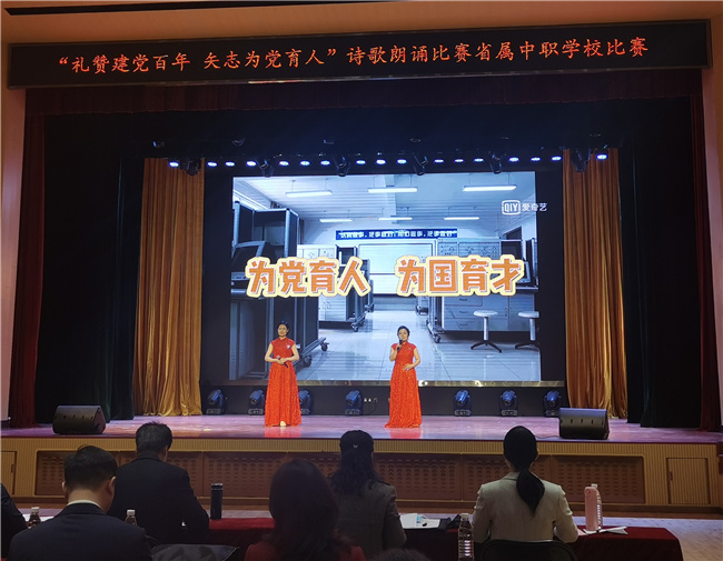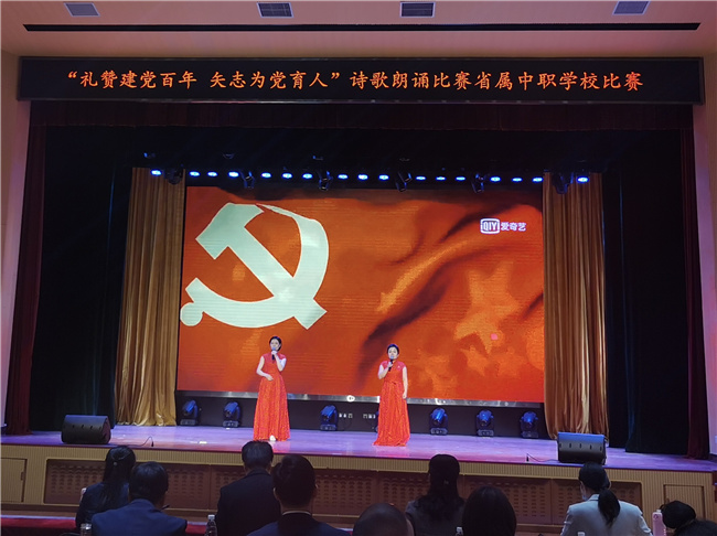 为加强和改进新时代师德师风建设,以高质量的师德建设水平向建党百年献礼。根据省教育厅《关于开展“礼赞建党百年,矢志为党育人”诗歌朗诵比赛、师德教育主题征文和师德师风优秀案例评选活动》要求,4月16日,我校程丽娜、田雨佳两名教师参加省教育厅举办的“礼赞建党百年,矢志为党育人”诗歌朗诵比赛省属中职学校预选赛。