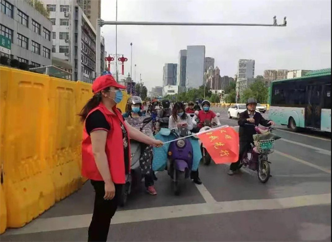为推进我校党史学习教育落地落实,扎实开展“我为群众办实事”活动,5月26日,我校后勤党支部组织支部党员群众,在花园路广电路交叉口、中州大道晨旭路交叉口、中州大道与北环交叉口等几个非机动车和行人流量比较大的路口组织文明交通志愿岗,真正为群众办实事。