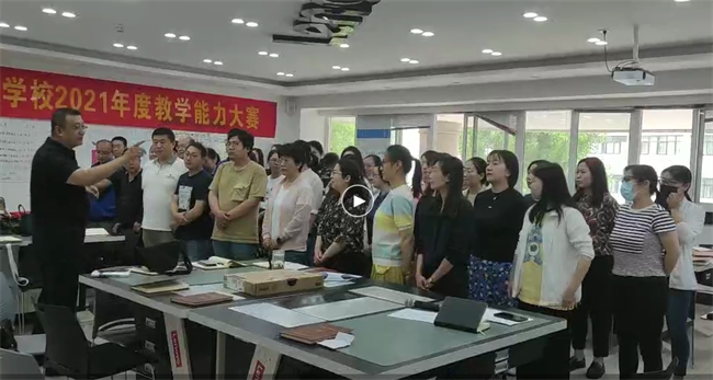 最后全体教职工齐声歌唱唱《没有共产党就没有新中国》为建党百年献礼。