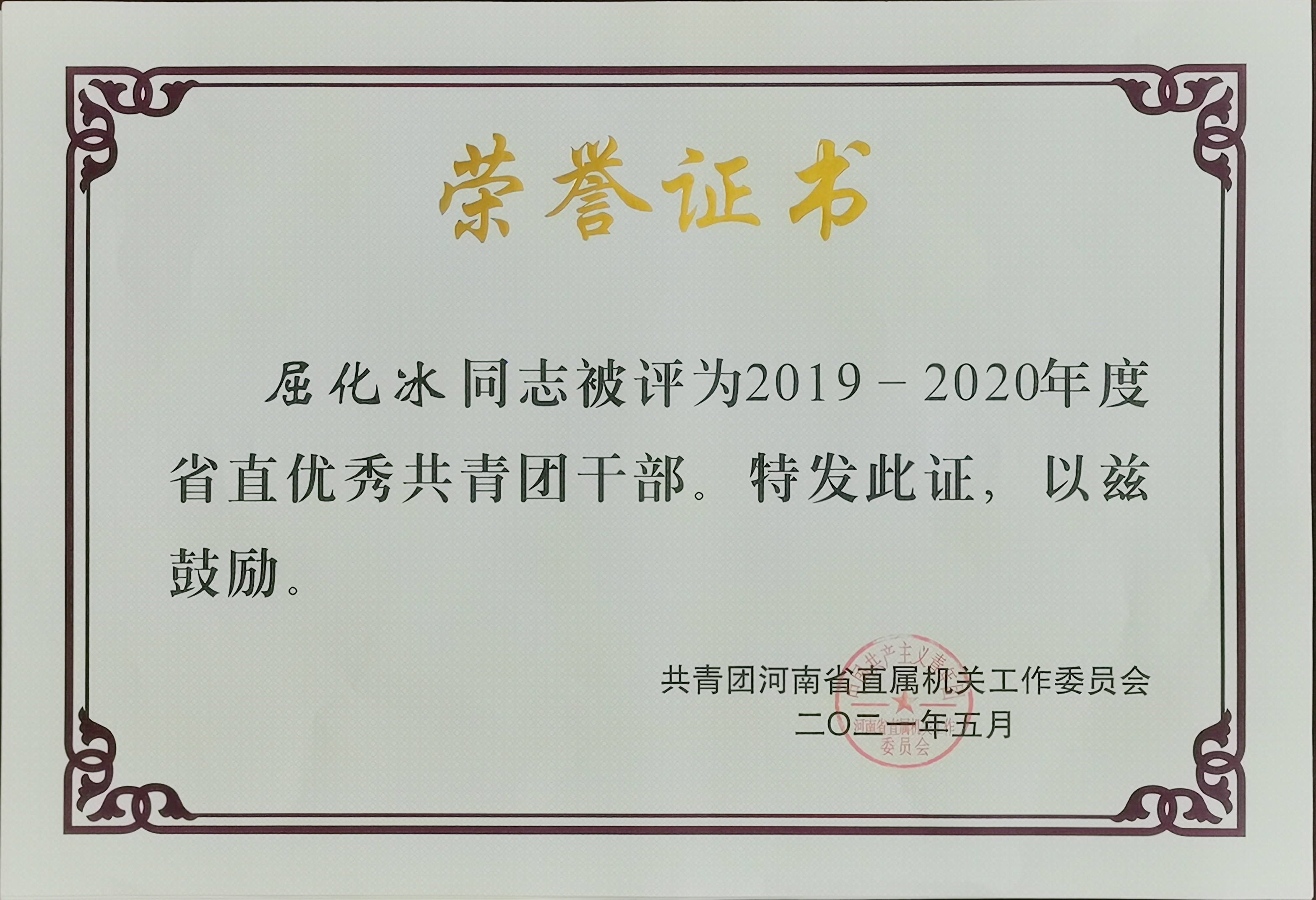 为表彰先进、树立典型,激励我校广大团员团干部不懈奋斗,再创佳绩,经过考核评比,校团委推荐,校领导审核,上报至省直团工委评定通过,艺术设计系2019级2班团支部、计算机技术系2019级10班团支部获得“省直五四红旗团支部”荣誉称号,吴雅烁、张爽、王豪杰获得“省直优秀共青团员”荣誉称号,屈化冰、马浩琼获得“省直优秀共青团干部”荣誉称号。
