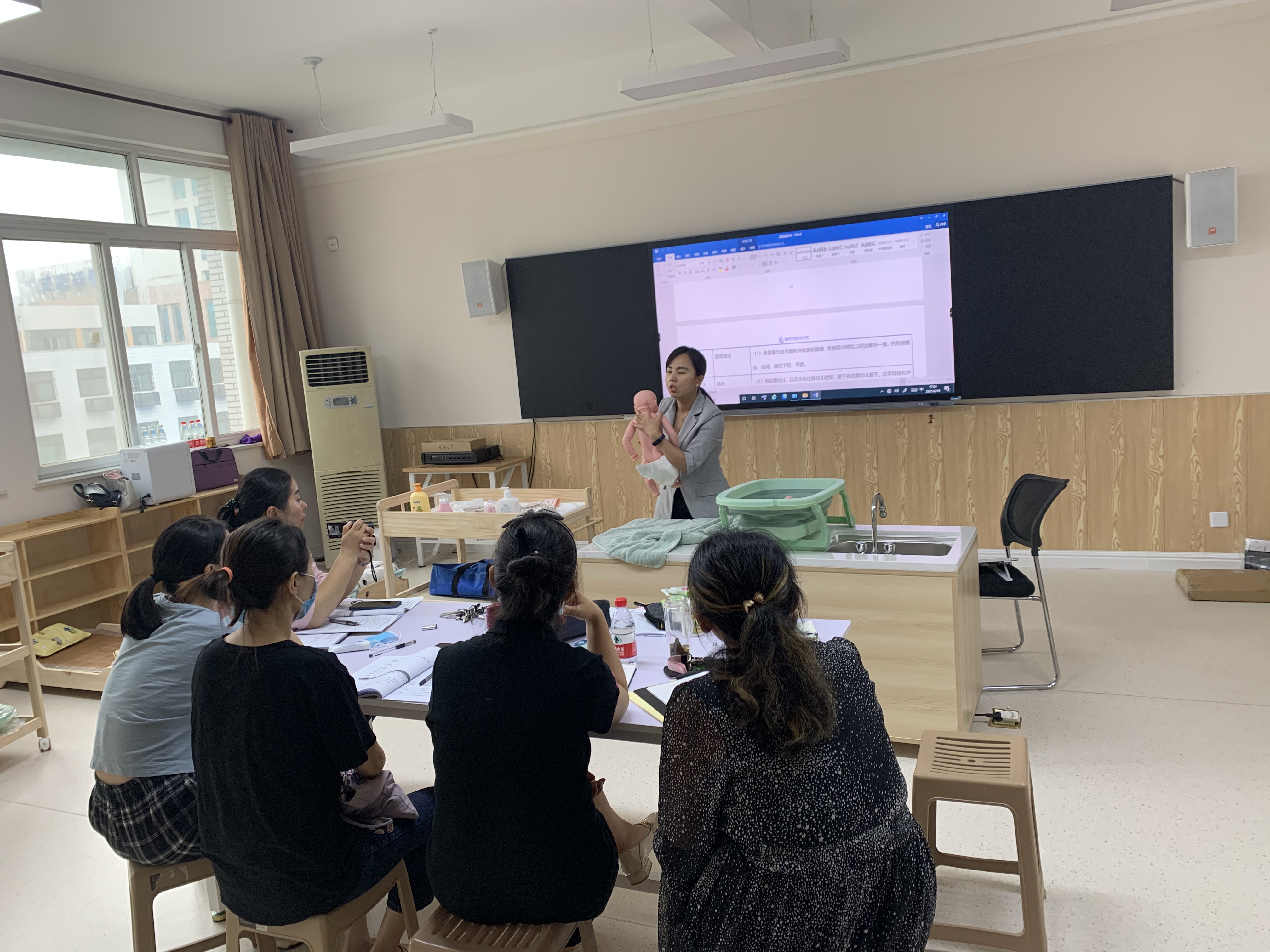 为提升我系幼儿保育专业教师专业教学能力,于6月16-17日在学校幼儿保育实训室进行了婴幼儿照护培训,此次培训邀请到郑州市人民医院儿童健康发展中心郑丽萍医师,高级母婴培训师苏晓萍等专家进行授课,培训内容包含婴幼儿生活、卫生保健、安全与急救等知识的讲解及模拟实操。商务系副主任崔磊磊、幼儿保育教研室主任李莉、骨干教师贾宇灿、申绍芳、胡蓉等七位教师认真学习记录,与专家们进行交流学习,特别是在实操演练环节,每位老师都认真演练,一丝不苟,收获颇丰,期待各位老师在以后教学中的精彩表现。