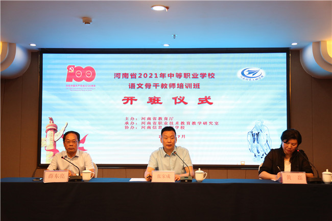 7月5日上午,由河南省教育厅主办、河南信息工程学校承办的河南省2021年中等职业学校语文骨干教师培训班开班仪式在我校举行。河南省教育厅职成教处副处长张家成、我校校长黄磊、副校长薛东亮及来自全省的100多名骨干教师参加了开班仪式。仪式由薛东亮副校长主持。
