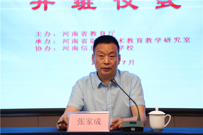张家成处长在讲话中指出,此次培训班的目的是着力提升我省中职学校语文骨干教师队伍素质和水平,加快建成一支师德高尚、素质优良、技艺精湛的高素质语文教师队伍,并对培训组织方提出了要创新教师培训模式和方法、科学规划培训内容等要求,对广大骨干教师提出了殷切希望,希望他们联系实际,学以致用,真正做到孜孜不倦、潜心钻研,使自身的业务素质得到全面的提升。