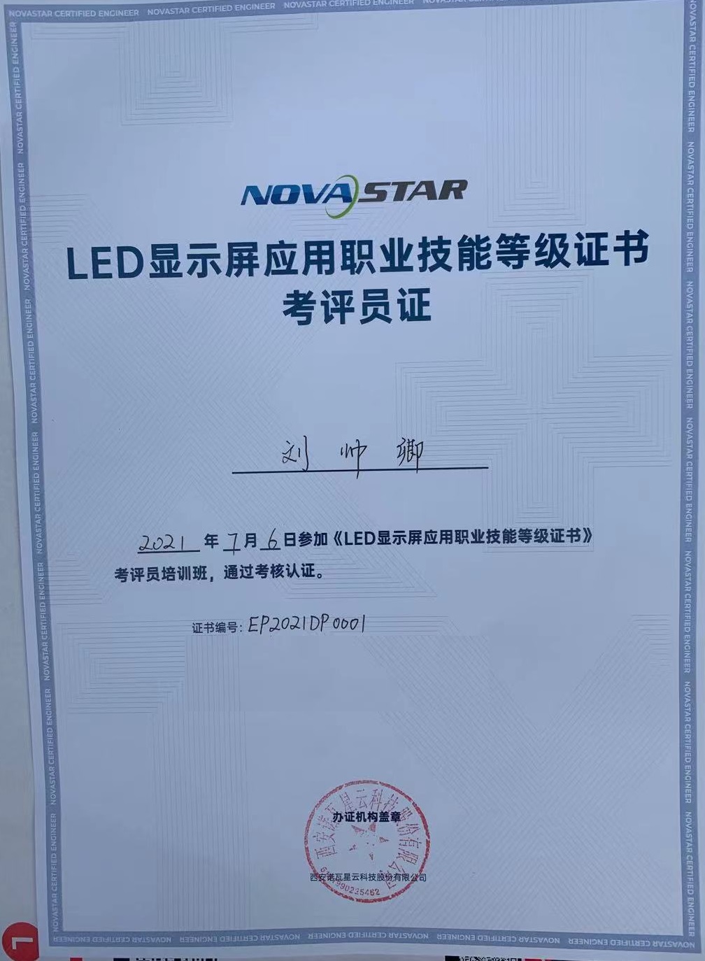 为推进“1+X”证书制度试点工作,深化复合型技术技能人才培养培训模式,我校电子工程系专业课教师陈红伟、刘帅卿参加了2021年“1+X”LED 显示屏技术与应用技能等级证书考评员师资培训,并以优异成绩通过考核,获得了 1+X 证书考评员资格。两位教师均表示,在下一步的证书考评工作中,将秉承教书育人的精神,在电子技术应用方面培养更多技能人才,为 1+X 证书试点工作贡献更多力量。