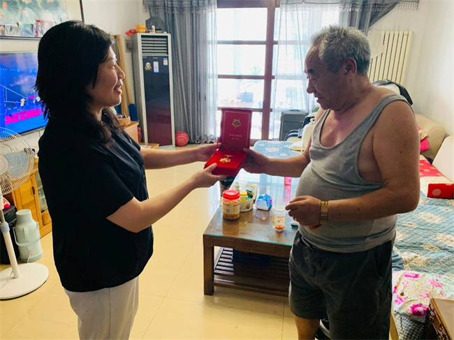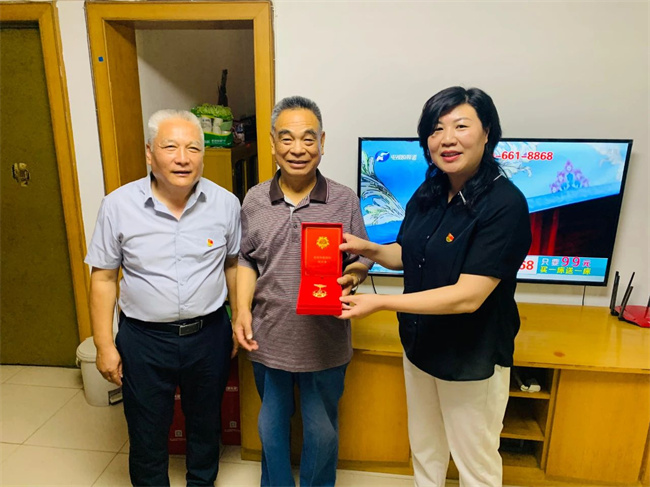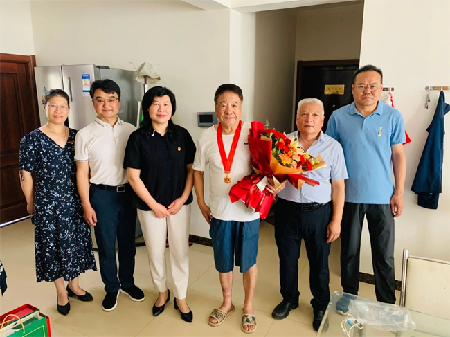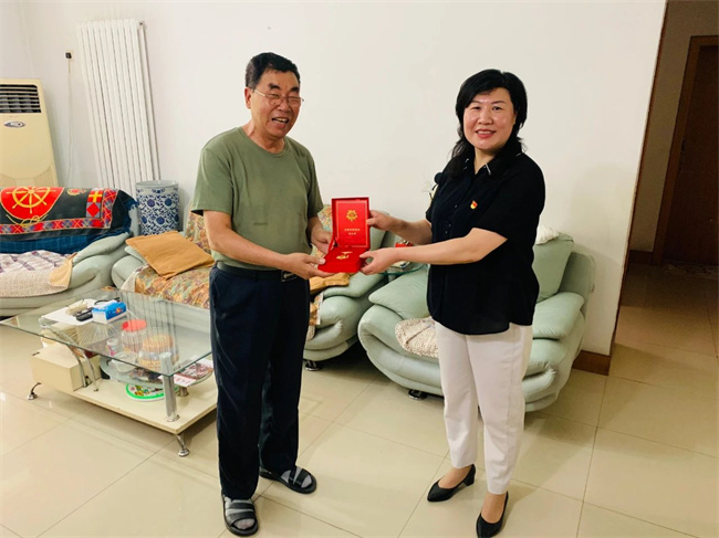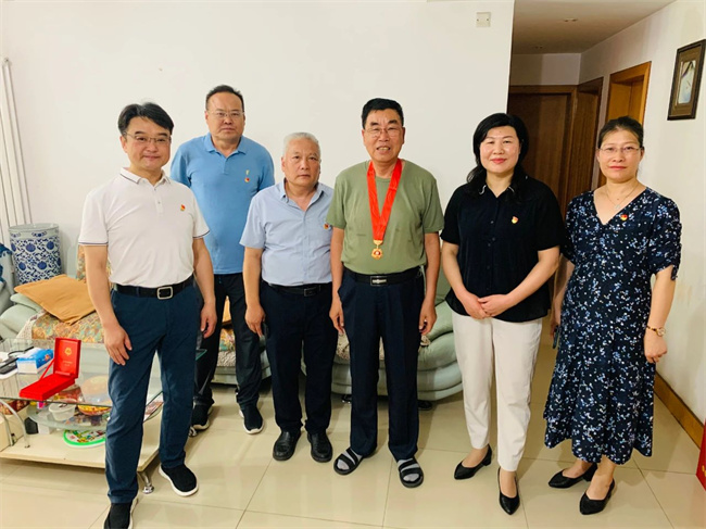 黄磊校长一行分别到五位老党员、老干部家里,向他们介绍学校目前的发展情况,详细了解他们的生活和身体情况,为他们颁发了“光荣在党50年”纪念章,送去慰问品。老党员们怀着激动的心情接受了纪念章,并感谢党组织的亲切关怀。老校长王宪政还给我们讲述了当年克服重重苦难筹建实训楼和八角楼的历史,黄磊校长对各位老党员为学校发展做出的贡献表示感谢,并嘱托各位老党员保重身体,好好享受新时代的生活, 在身体允许的情况下多参加党组织活动。
