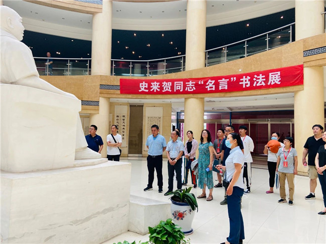 在刘庄,学员们走进史来贺纪念馆,饶有兴趣的聆听讲解员的解说,深入了解史来贺的生平事迹以及刘庄的发展史,认真学习“坚定信念、共同富裕、一心为民、勤俭创业”的史来贺精神,真切感受史来贺同志带领村民走上共同富裕道路的坚定意志和时刻把群众冷暖挂在心上的为民情怀。随后,面对党旗,在薛东亮副校长领誓下,全体党员举起右拳,庄严宣誓,一起重温入党誓词。最后,学员们参观了刘庄新村和史来贺故居。