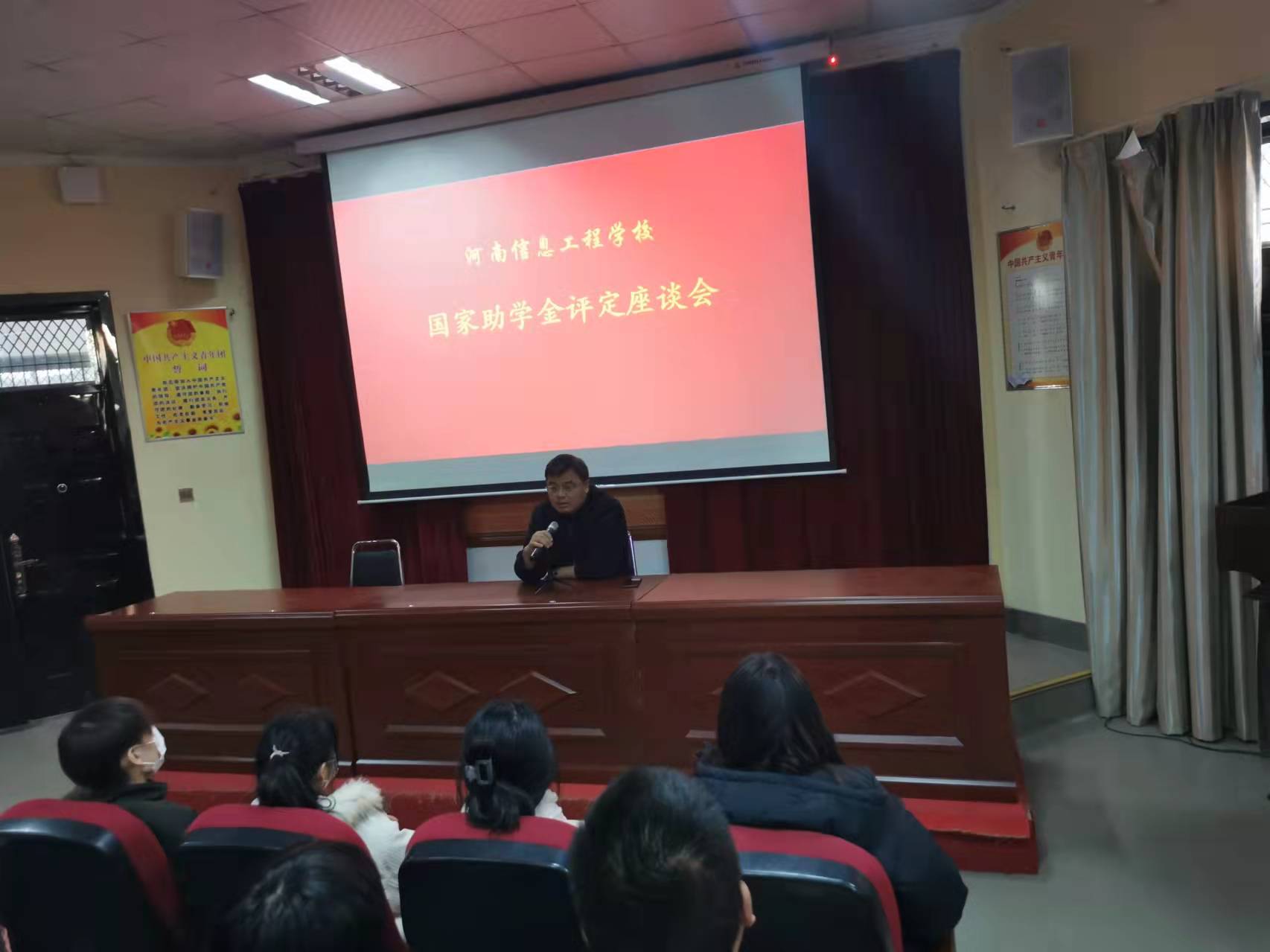 为进一步做好学生资助工作,探讨出一套适合我校实际的行之有效的学生资助办法,从而把国家的资助政策落到实处。11月下午4:10,我校学生处组织各班班委,在道德讲堂召开国家助学金评定工作的学生座谈会。学生处冀红海处长及主管学生资助工作的张新荣老师参加了这次座谈会。
