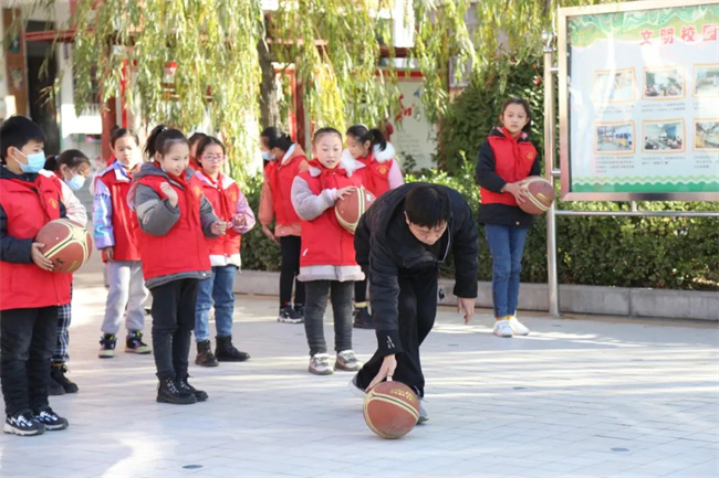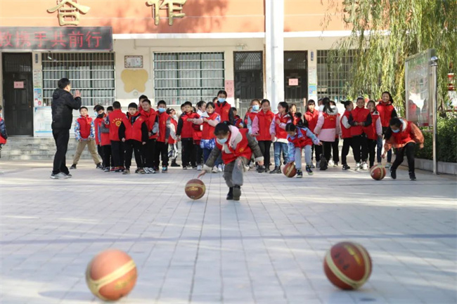 校企合作办黄振海老师给孩子们带来了一堂寓教于乐的体育课,主要训练内容是篮球的原地运球和行进间运球,孩子们在运球与相互交接球中体验了团队协作的重要性。