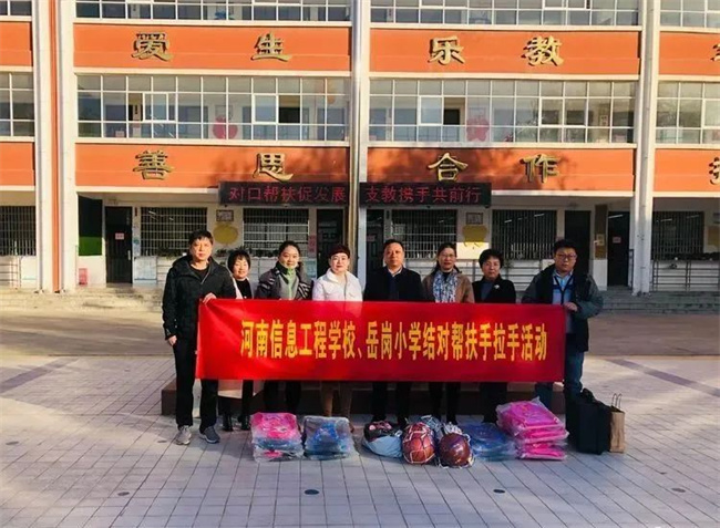 为深入开展我校文明创建活动,落实市文明办结对帮扶要求,11月25日,迎着冬日暖阳,我校教师志愿者在党政办主任王晓辉的带领下,来到新密市来集镇岳岗小学开展送课下乡活动,并为学生们捐赠了新书包、文具和篮球,帮助岳岗小学改善教学条件,帮扶困难学生,送去信校温暖。