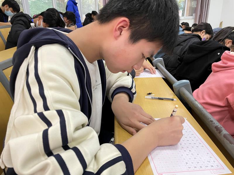 比赛过程中,三个大屏教室秩序井然、针落有声,学生们屏息凝神、一丝不苟地书写着。有的笔画分明,有的笔力刚劲,有的结构严谨。大家在一笔一画、一撇一捺的书写中感受着中华传统文化的魅力,陶冶了情操,平和了心境,也给校园增添了一抹浓重的翰墨书香。