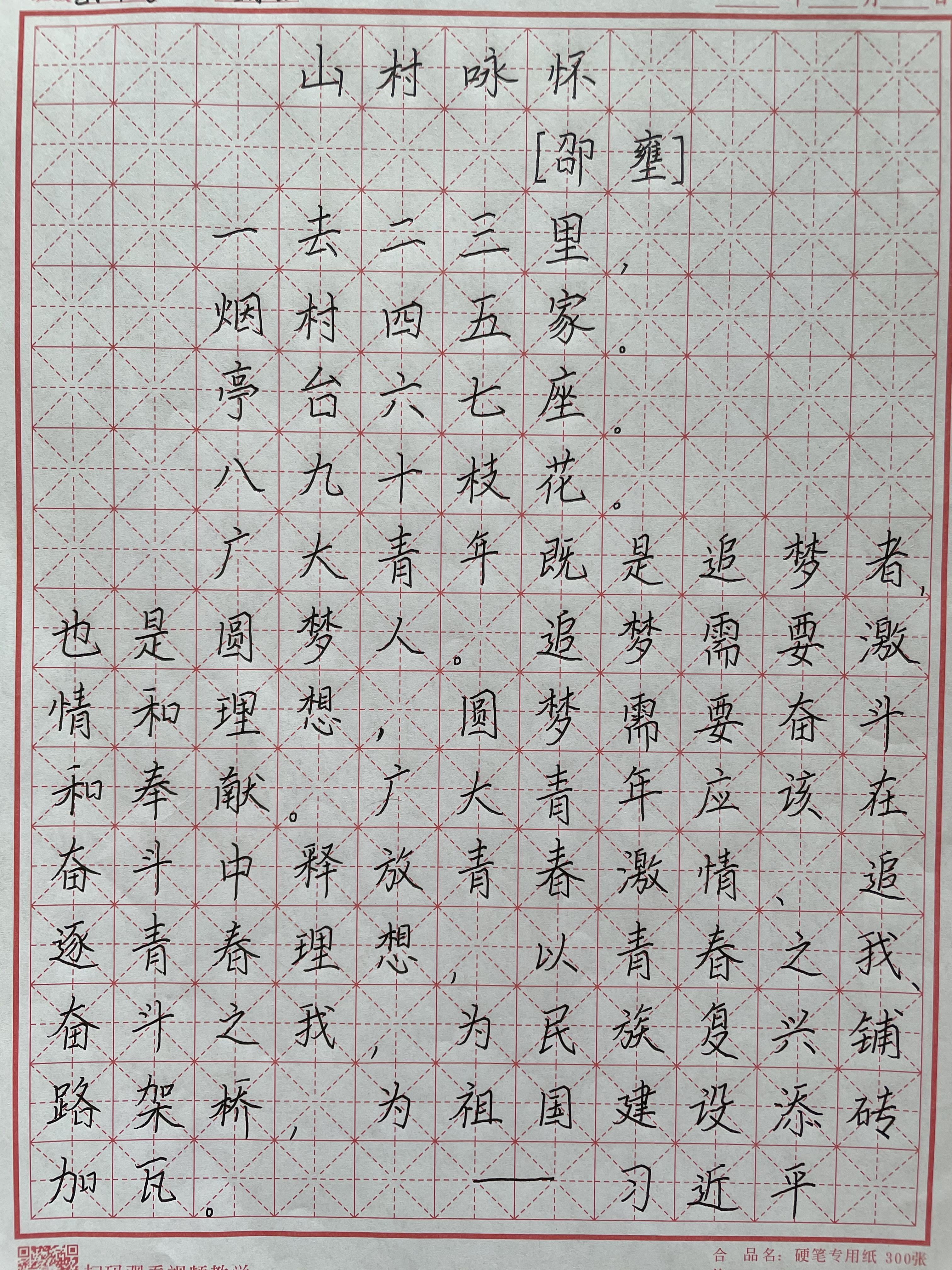 本次硬笔书法比赛是2021学年至2022学年第一学期语文第二课堂活动内容之一,自11月开始,先以班级为单位开展,学生以楷书字体创作一副书法作品参加班级遴选,选出的书写小能手参加校级比赛。