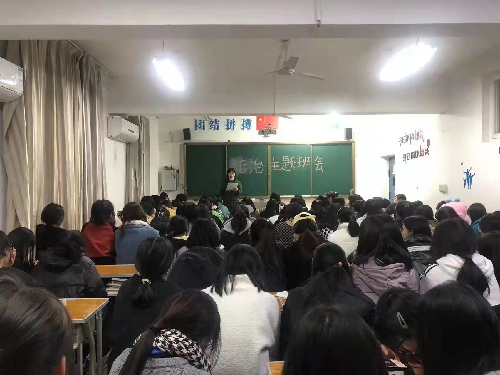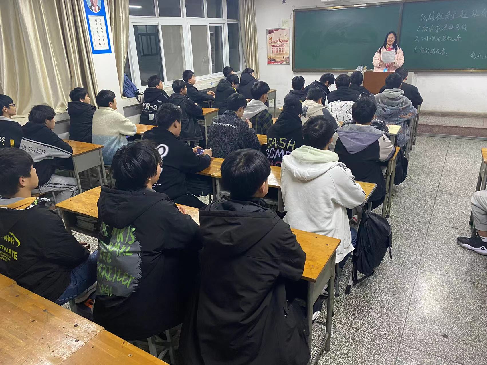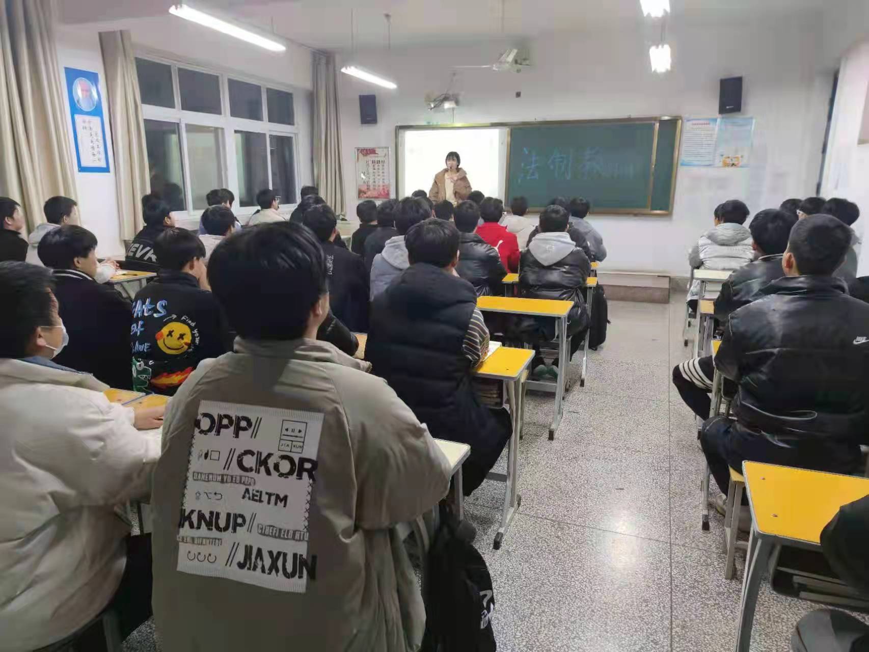 晚自习时间,各班组织开展法制宣传主题班会,班主任从《治安管理处罚法 节选》、2021《 刑法》第十七条、《打架的成本》三个层面,结合中职学生特点和现状,列举了同学们最习以为常的旷课、夜不归宿,参与赌博或者变相赌博,偷窃、故意毁坏财物、强行向他人索要财物,观看、收听色情、淫秽的音像制品读物等,打架斗殴、辱骂他人,携带管制刀具等等多方面事例,告诫学生,什么是犯罪,什么是违法。教育学生当自己的合法权益受到侵害时,自我保护最有效的措施是求助法律。依法维权不仅能保护自己的合法权益不受侵害,而且是维护法律的尊严。使学生了解各种法律法规,知道运用法律武器保护自身的权利和利益,希望同学们学习法律知识,树立法律意识,懂得遵纪守法的道理。