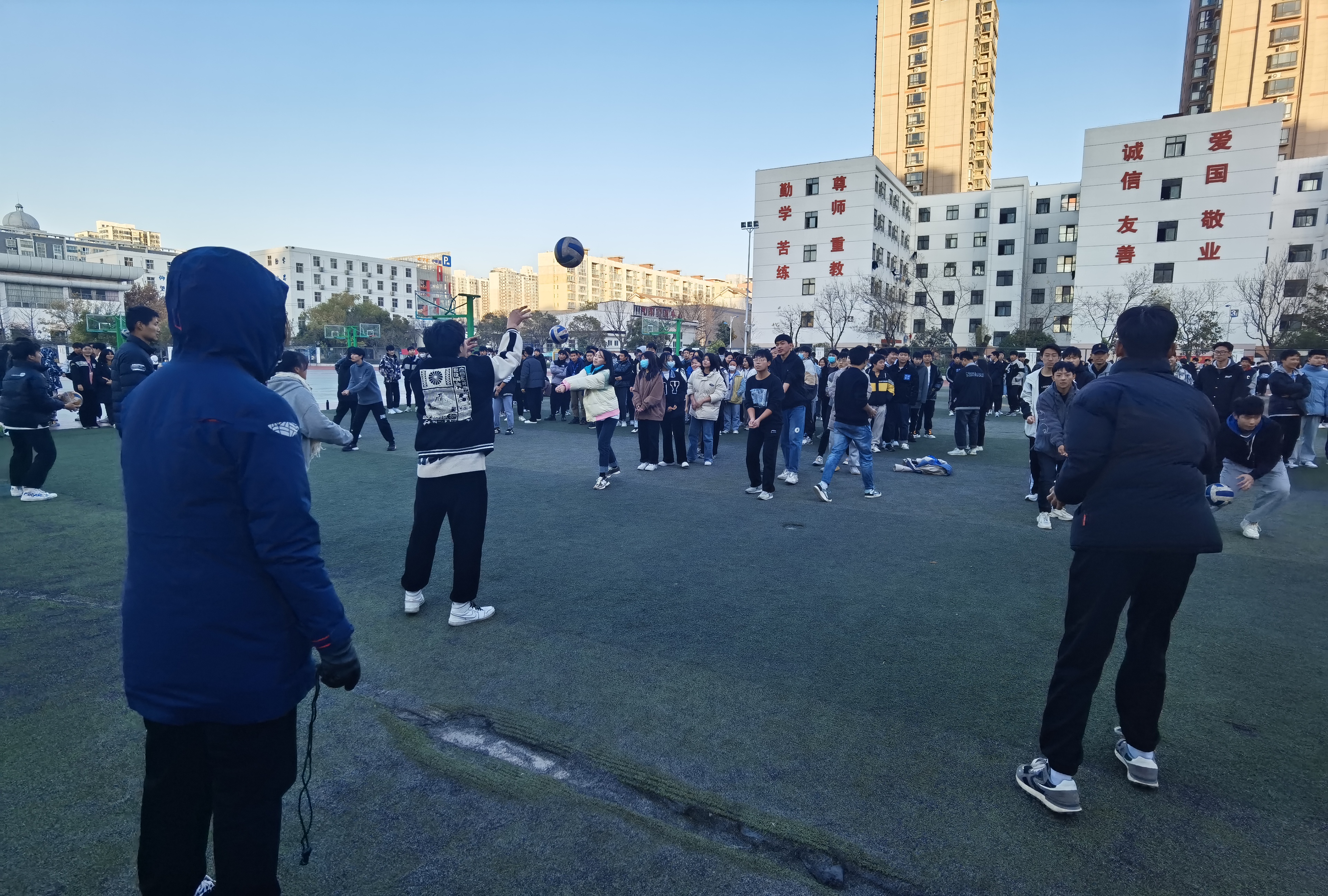为了深化课堂教学,强化学习效果,激发学习兴趣,基础部体育教研室于2021年12月2日下午4:20在校足球场举行了本学期学生第二课堂活动比赛——排球抛垫球接力赛。