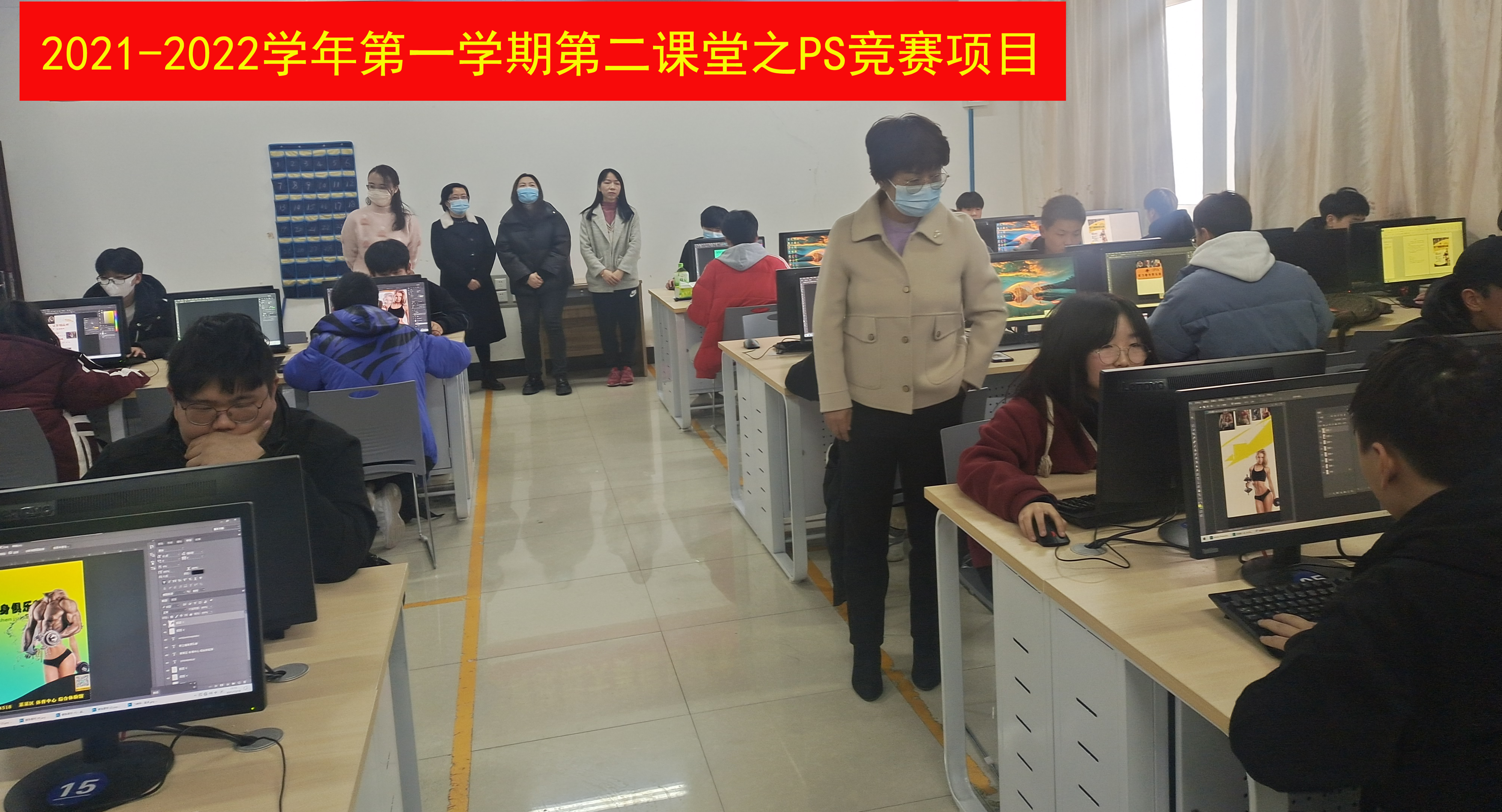 2021年12月14日下午,计算机技术系从计算机网络技术和网络信息安全两个专业中的12个班级中遴选出28名优秀选手参加了2021-2022学年第一学期的第二课堂活动之PS应用技术竞赛项目,此次竞赛活动组织场地在315机房,参加此项第二课堂活动的指导教师及评委有门雅范主任、杨宗仁副主任、石艳老师、尚风琴老师、宋晓丽老师及李楠老师,比赛时间为一个小时。