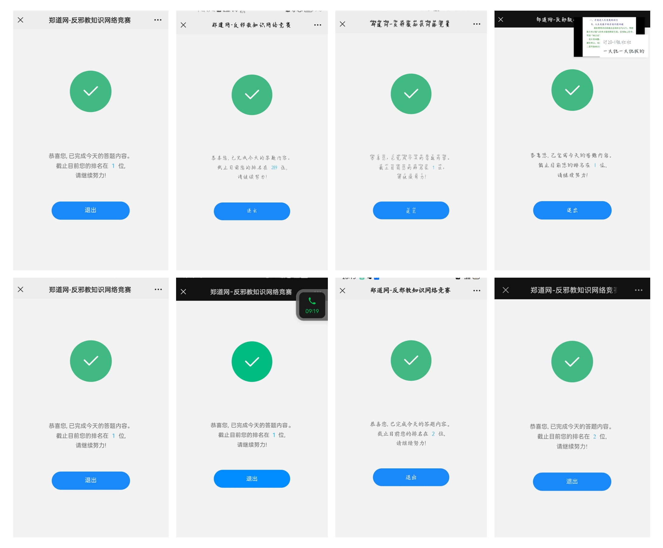 为进一步巩固和提高广大青年“识邪、防邪、拒邪”意识和能力,夯实反邪教宣传工作基础,厚积反邪教社会土壤,不断提升反邪教宣传的影响力,根据金水区反邪教协会要求,我校积极组织开展“反邪教”宣传知识网络答题竞赛活动。