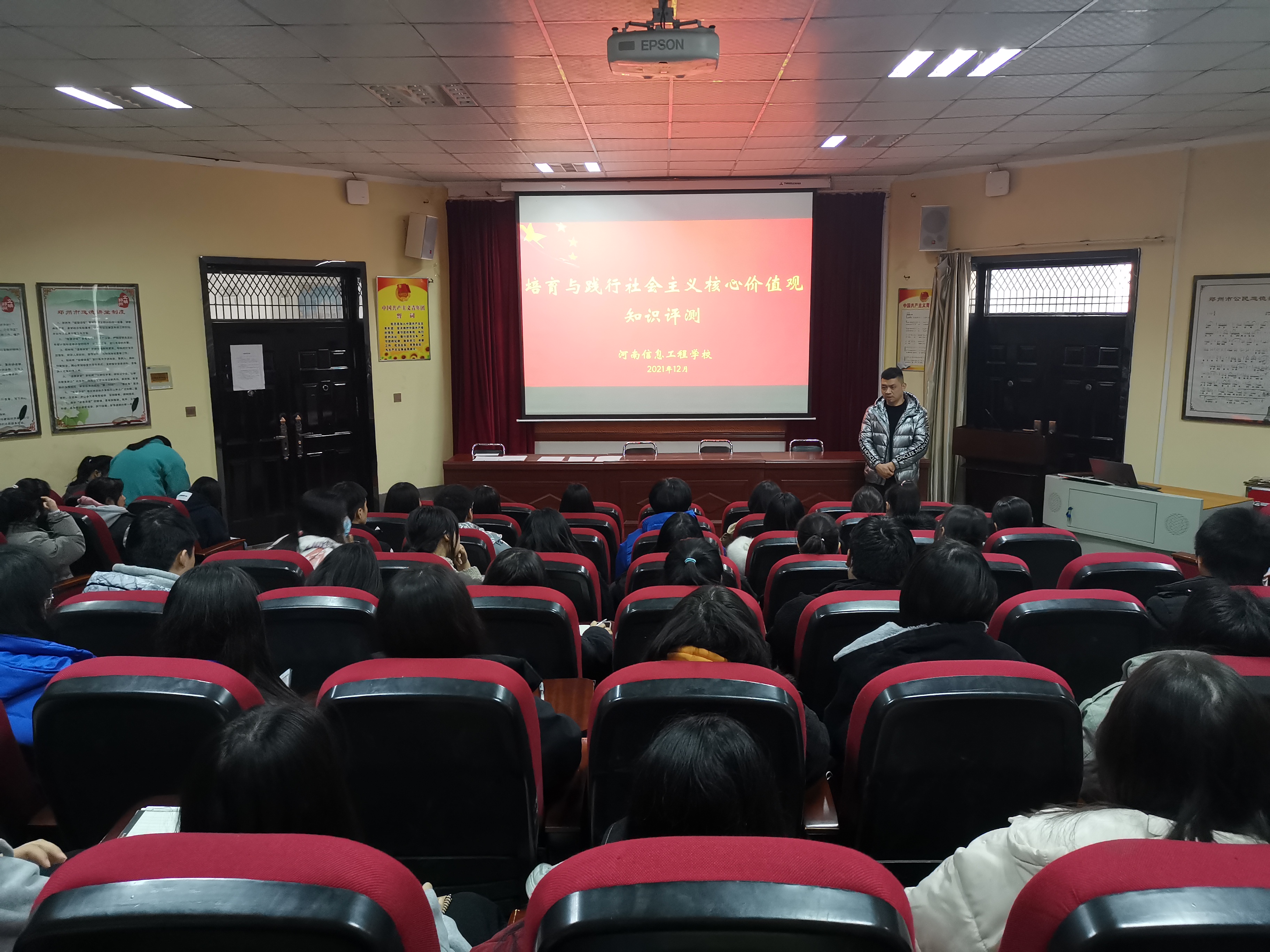 为积极培育践行社会主义核心价值观,继续深入学习党的十九大和十九届二中、三中、四中、五中、六中全会精神重要精神及习近平新时代中国特色社会主义思想,大力弘扬中华优秀传统文化、革命文化和社会主义先进文化,强化提升新时代青年学生的思想政治水平,培养当代青年人昂扬向上、奋发有为的优秀品质,增强青年人的文化自信心及文化认同感,以培养德智体美劳全面发展的社会主义建设者和接班人的要求为重点,我校组织开展了培育与践行社会主义核心价值观学习宣传教育活动。