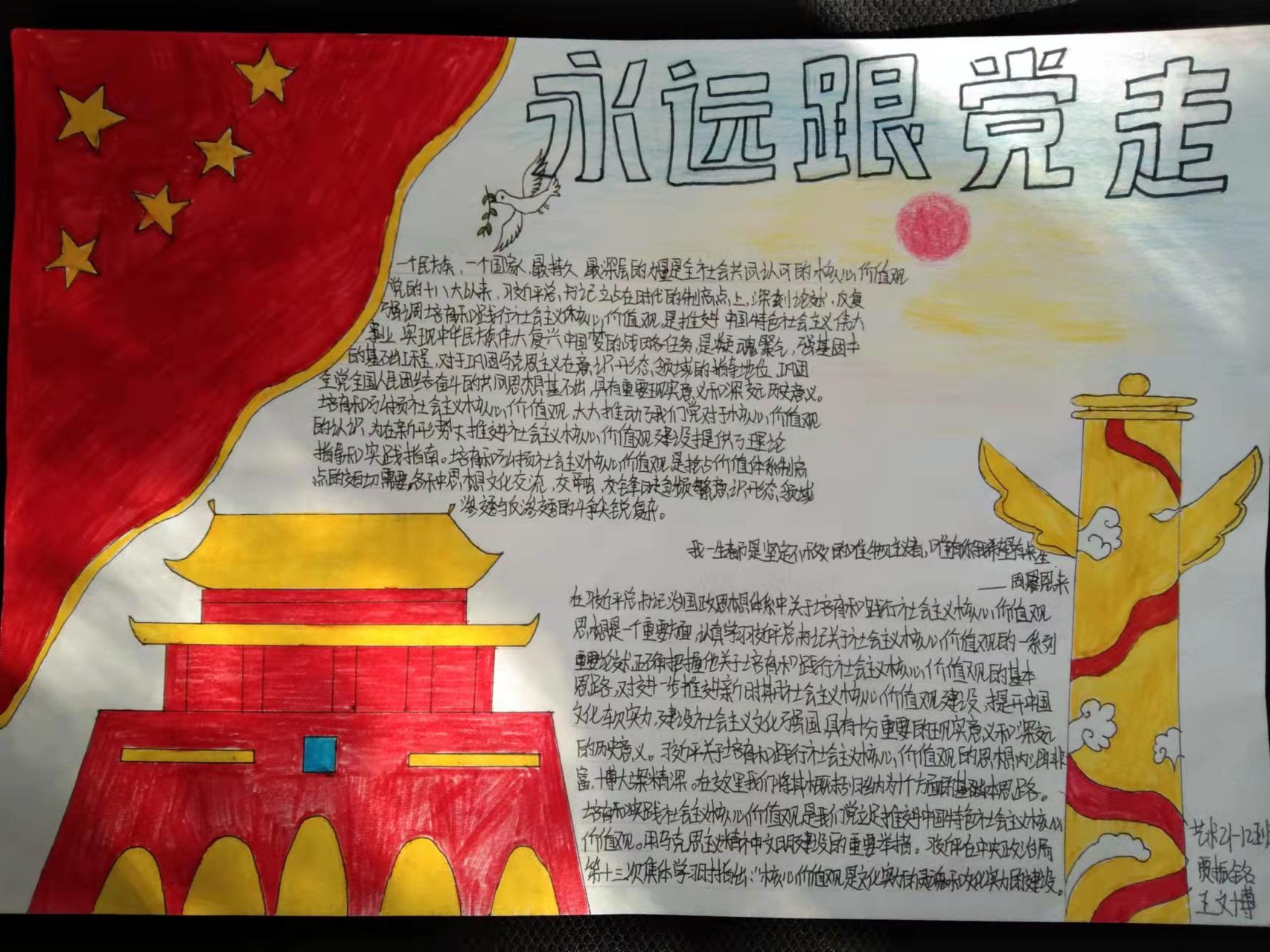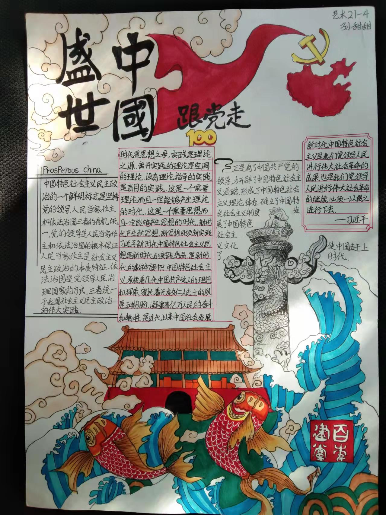 2021年11月,手抄报活动方案公布后,每位专兼职思政课老师开始对任课班级学生进行耐心宣讲、动员、引导、激励,学生参与热情高涨。经过初选,每位老师选出了十幅以上作品进入决赛。