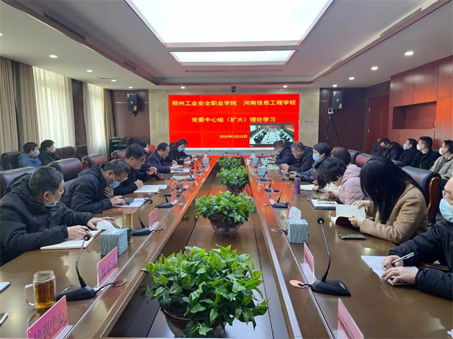 2月23日上午,两校召开党委理论学习中心组(扩大)会议,集中学习省工业和信息化厅党组书记、厅长朱鸣《胸怀全局 守好一域 在新征程赶考路上书写出彩工信答卷 》的工作报告和《2022年全省工业和信息化工作会议》精神。会议由两校纪委书记乔延坤主持,两校领导和全体中层干部参加了会议。会议设学校实训楼六楼会议室和yl6776永利集团一楼会议室两个会场。