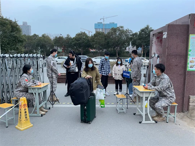 2月25日,微风和煦,阳光明媚,踏着春天的脚步,我校迎来了 2022年春季学期首批返校学生。校党委书记宋廷楷带领学生处、总务处医务室、保卫处、党政办的负责同志和学校教官及有关部门人员到学校大门口迎接返校入学的学生们,安排布置学生入校扫码、测温、消毒的各项准备工作。返校学生在教官的指引下,依次扫码测温进入校园,回到已经打扫消毒干净的校舍。