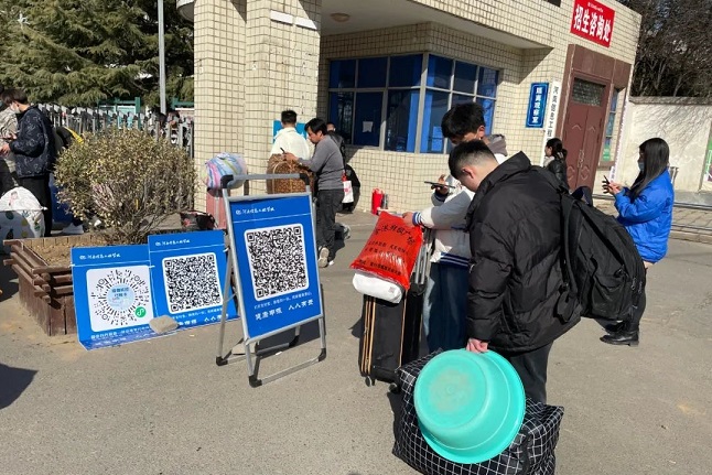 2月25日,微风和煦,阳光明媚,踏着春天的脚步,我校迎来了 2022年春季学期首批返校学生。校党委书记宋廷楷带领学生处、总务处医务室、保卫处、党政办的负责同志和学校教官及有关部门人员到学校大门口迎接返校入学的学生们,安排布置学生入校扫码、测温、消毒的各项准备工作。返校学生在教官的指引下,依次扫码测温进入校园,回到已经打扫消毒干净的校舍。
