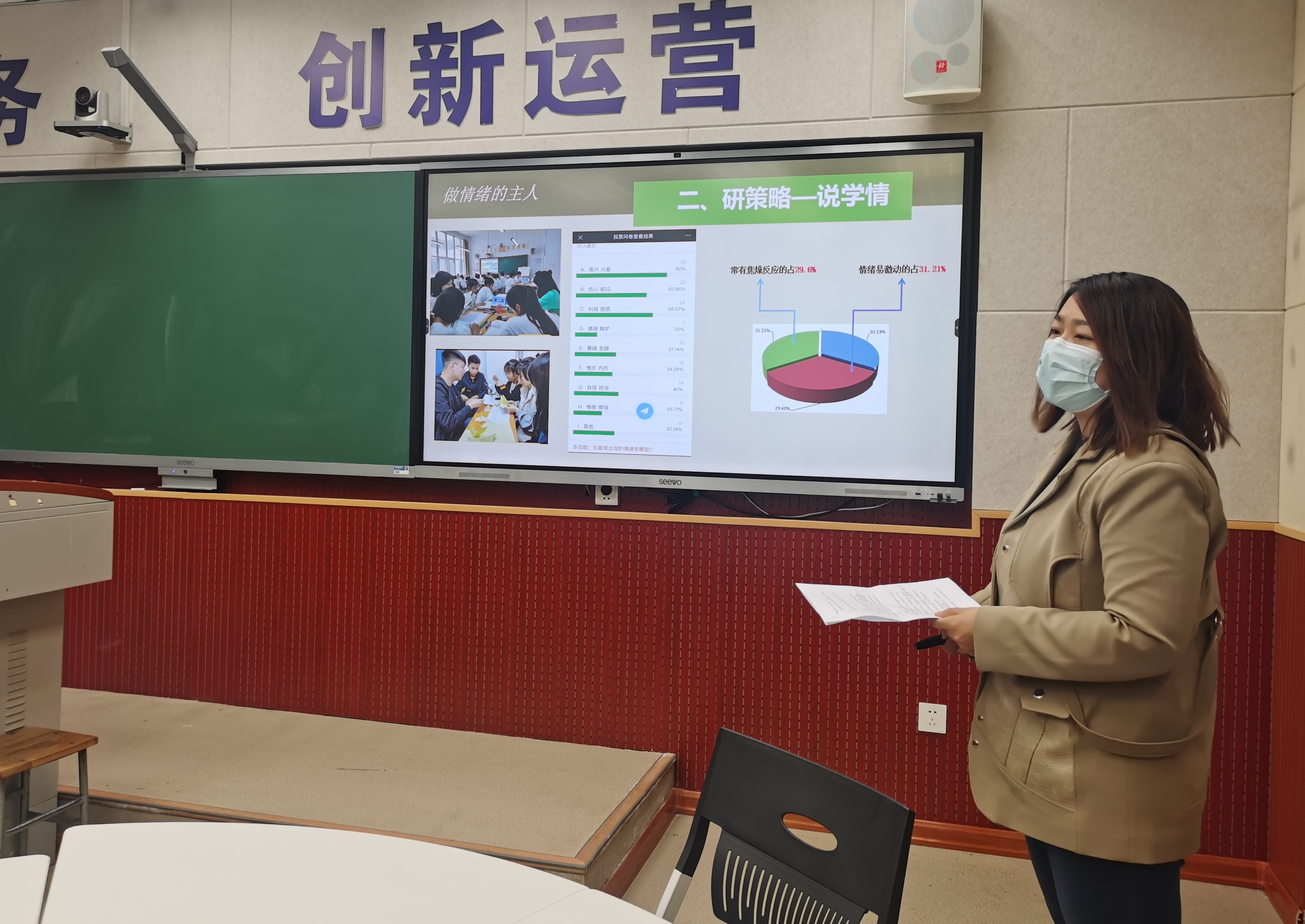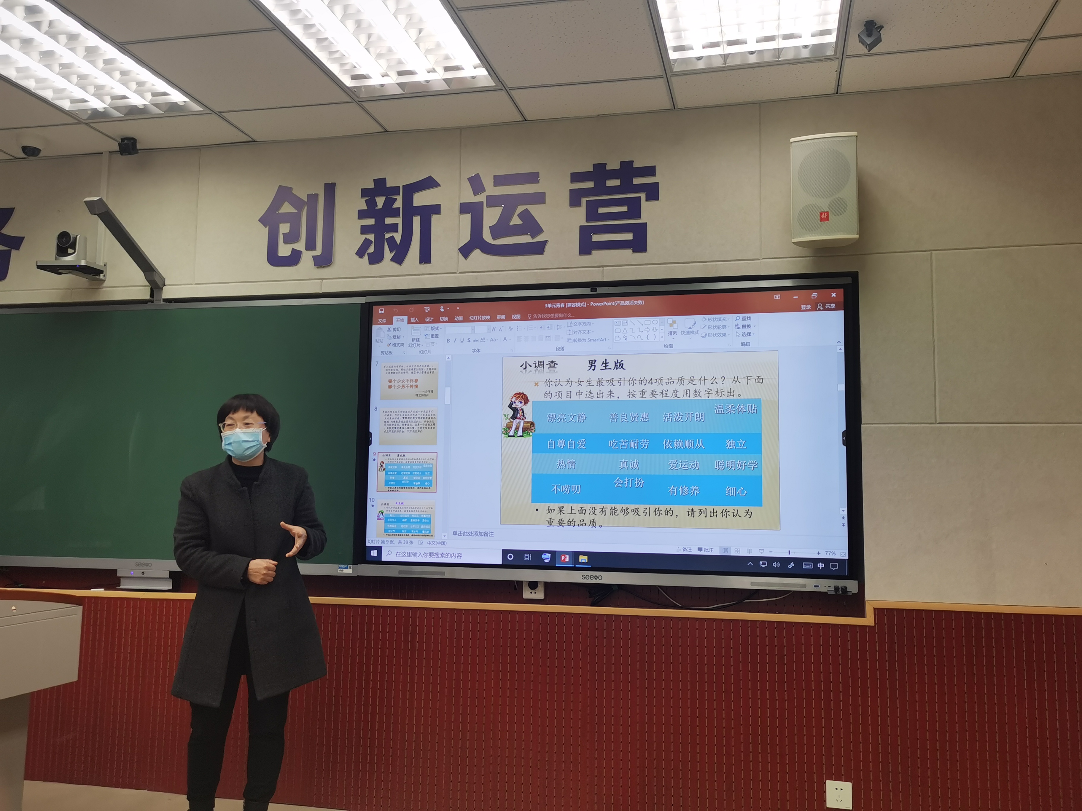 阳春三月,春光正好,2022年3月29日下午,基础部思政教研室教学技能“大练兵”活动在教学楼117教室举行。参与本次“大练兵”活动的有基础部杨娟主任、思政教研室刘宁主任、河南省优质课一等奖获得者李佩玲老师以及全体思政课教师。