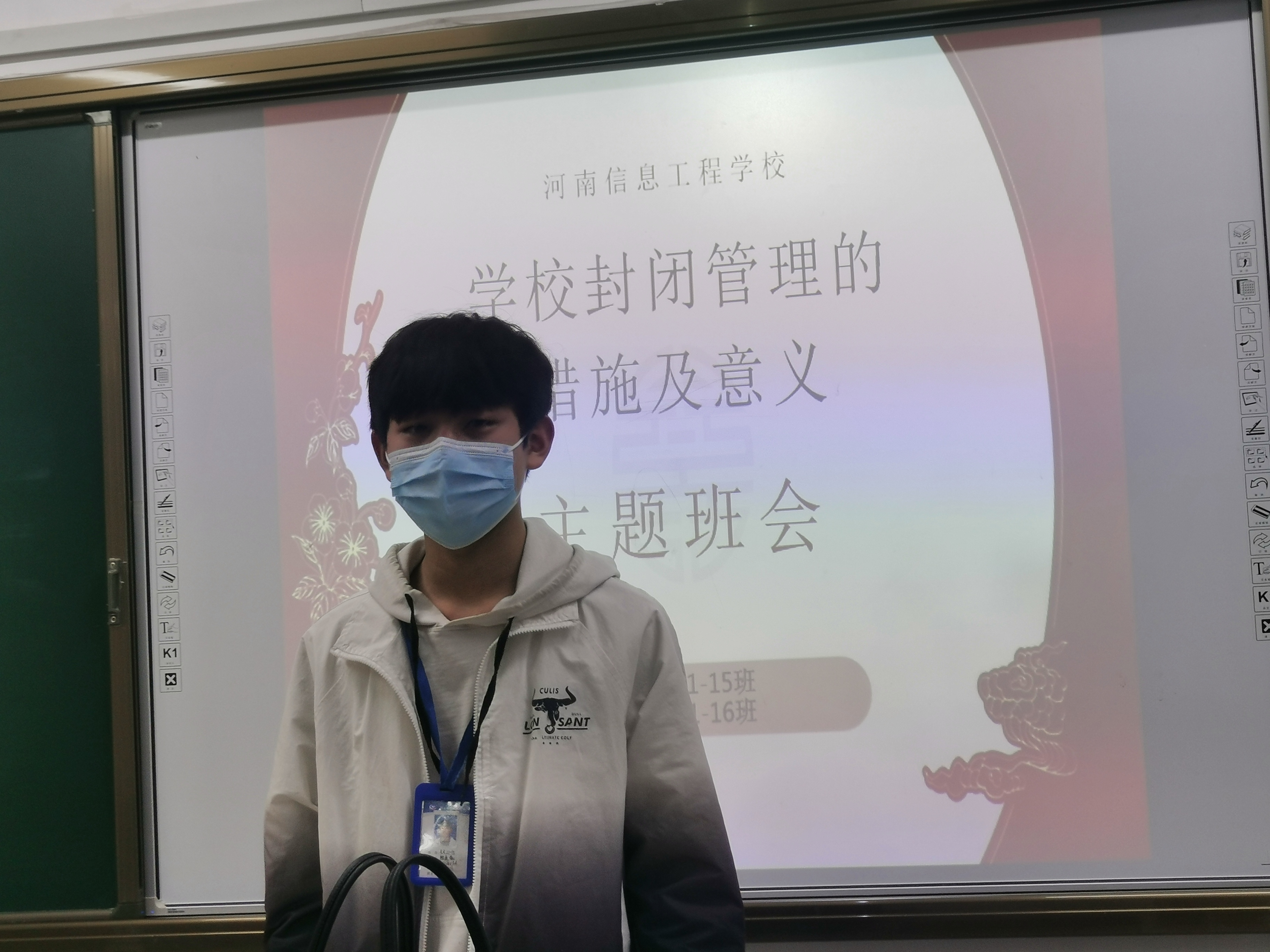 自2022年3月以来,全国疫情频发,点多面广,形势严峻,在这样的形势下,我校严格执行省、市疫情防控政策。2022年2月25日学生返校后,实行封闭管理,学生非必要不出校,学生长期封闭在学校难免会有抱怨、不理解、烦躁等负面情绪,为了让学生深刻理解目前的封校管理政策的正确性,也为了让学生积极配合学校防疫措施,在学生处领导的部署下,各班积极组织学生开展“学校封闭管理措施及意义”主题班会。