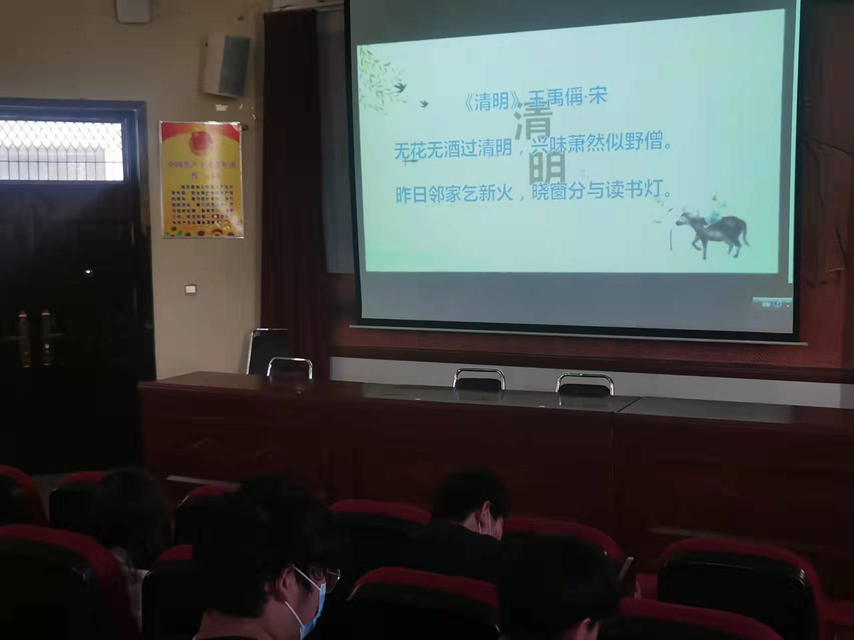 各班以班级为单位,在教室召开了清明节座谈会,班主任从清明节的来历、与清明节有关的诗词,清明节的传统习俗等方面展开,各班同学都精心准备了发言,有的同学讲到了最怀念的人,有的讲了英雄的故事及今天幸福生活的来之不易,动情处,同学们一边讲一边哭,诉说着对亲人的思念以及子欲养而亲不待的遗憾。