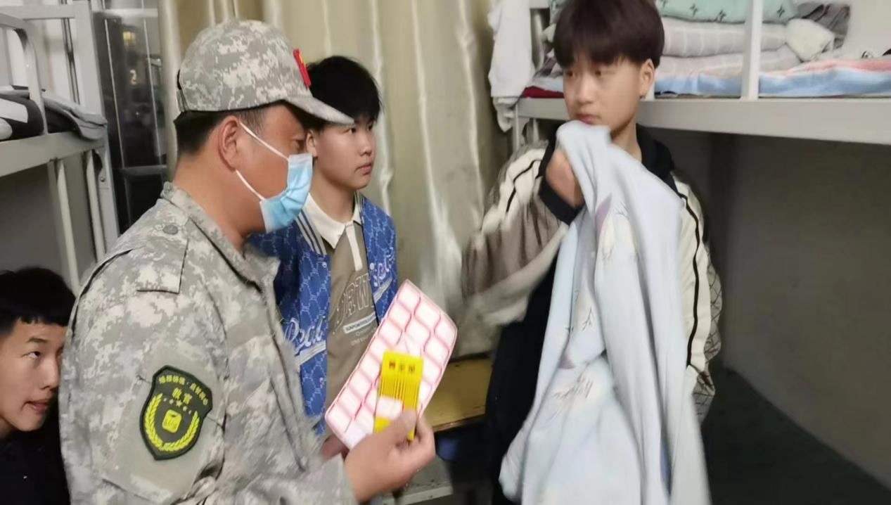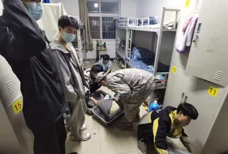 每天晚上晚自习前,陆陆铭教官团队临时抽宿舍楼层,通知班主任集合学生开始对宿舍逐一检查。本次排查遵循全方位、无死角的原则,重点对学生寝室内有无明火、有无私拉乱接电线、有无违章电器使用、有无携带管制刀具等其他有安全隐患的物品等现象进行检查。在检查过程中,了解到大部分学生的安全防范意识较强,宿舍安全状况总体较好。排查中也发现了有个别学生违规购买香烟、火机、酒、各种管制刀具等违禁物品。学生处接下来将不定期开展多轮寝室安全、卫生检查工作,进一步掌握学生情况,排查宿舍安全隐患。