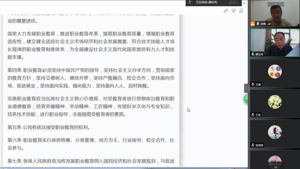 5月10日下午,我校教学第二党支部开展线上党员学习会议,会议学习的主要内容为新修订的职业教育法。会议由支部书记李强同志主持。