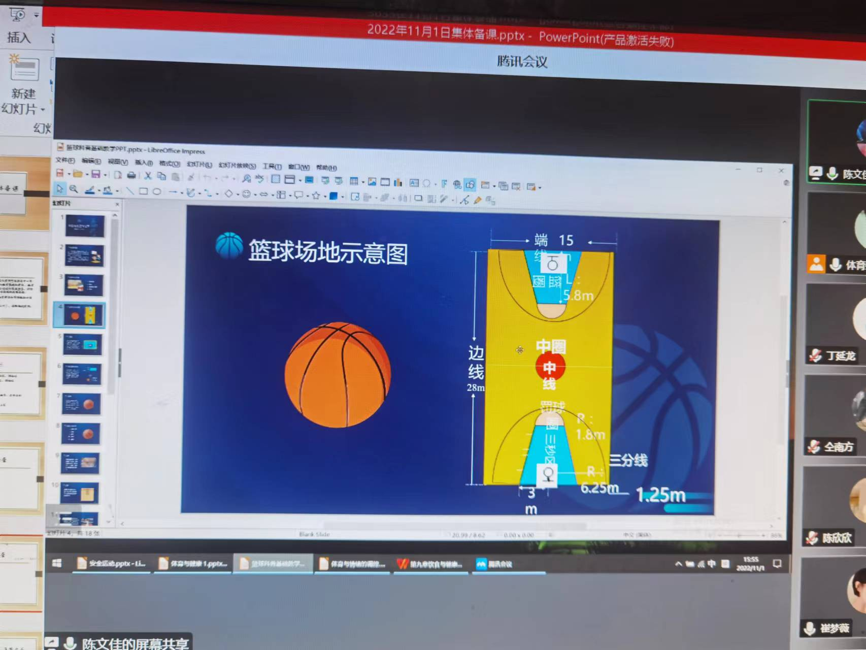 体育课如何上好网课?带着许多人疑问的眼神,体育网课在这个特殊的时期走过了两个多年头,也收到了很好的效果。2022年11月1日下午3点,体育教研室专、兼职老师15人准时进入腾讯会议,在教研室主任张毅斌老师的主持下开展了线上集体备课活动。
