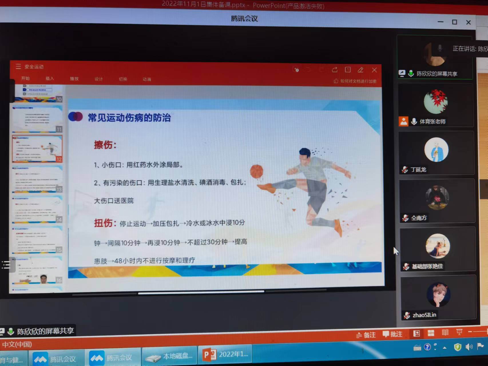 本学期疫情以来,体育线上课从体育的起源与发展、中国优秀传统体育文化、奥林匹克运动、合理膳食、运动损伤的预防与处理等健康教育的理论知识到排球、篮球的场地、器材、规则、裁判法以及基本技术的学习都进行了深入的课堂教学,使学生从了解基础知识到看懂比赛,会看比赛进而学会欣赏比赛,让他们学会看门道而不是看热闹,从中收获知识与快乐。 本次集体备课大家分享交流了自己的课件、上课的组织形式、课程的构思等,并统一了未来四周(线上、线下)的授课计划和内容,大家集体研讨,集思广益,收获颇丰,为下一阶段教学工作的顺利实施打下一个良好的基础。