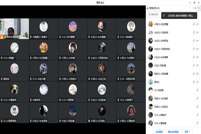 由于疫情紧张,本学期教学情况特殊,大部分教学通过线上开展。同学们认为大多数教师线上教学内容丰富,责任心强,教学方法多样,讲课认真,针对同学们不会的知识点通过录屏等方式帮助巩固记忆,对任课教师的教学比较满意。同时,同学们提出了线上教学的缺点,如同学们上课积极性需要提升,作业提交率相对较低,动手实践的机会较少。最后,各系主任对同学们提出的部分问题进行了解答,给同学们提了不少提升学习效果的建议和学习方法。