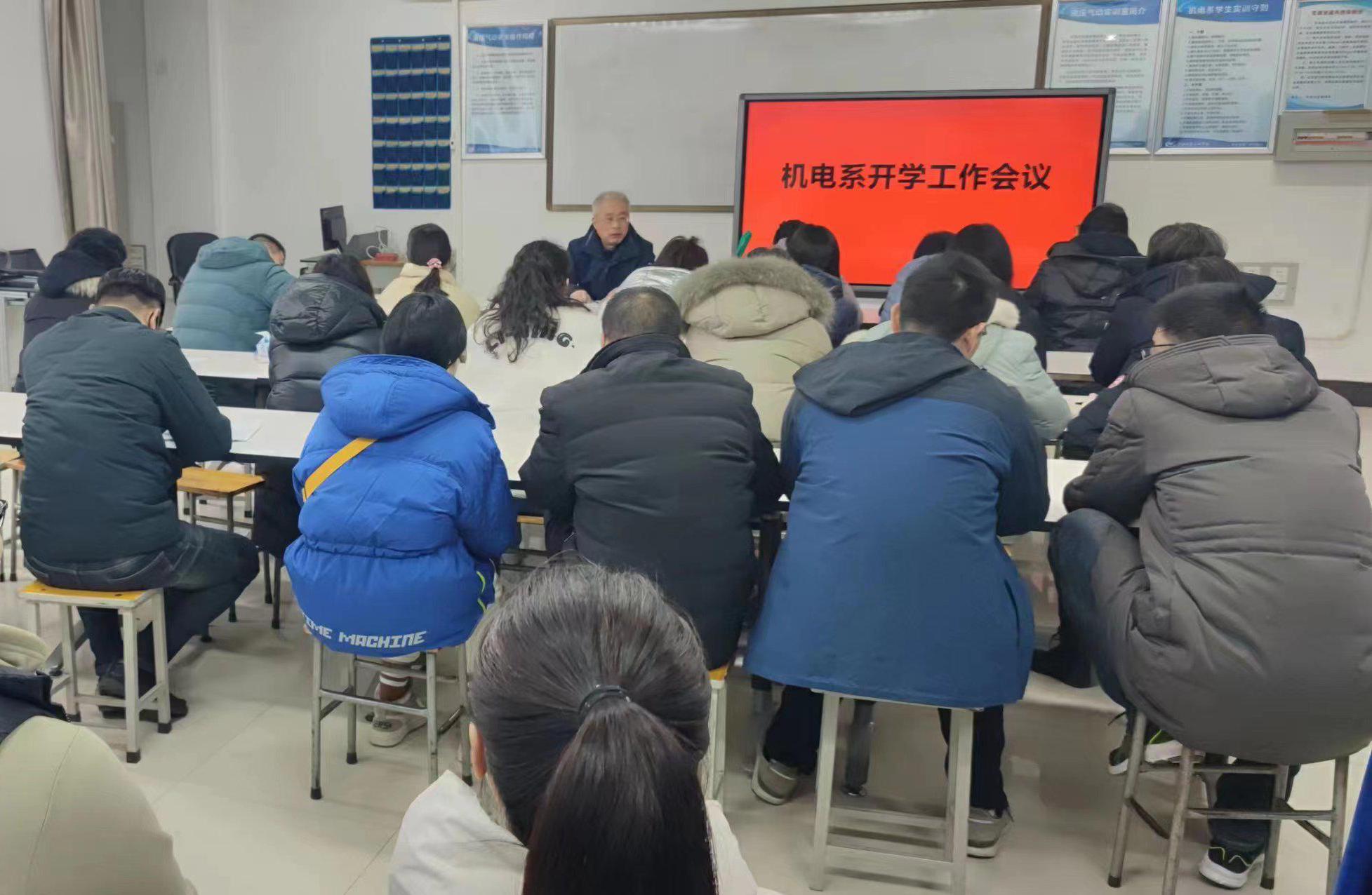 2月10日上午,机电系在北校区实训楼406室召开新学期开学工作会议,会议由徐辉主任主持,机电系全体教师参加了本次会议,校企合作方清华大学天津高端装备研究院、郑州鑫诺教育集团有限公司的相关老师通过腾讯会议参加了本次会议。