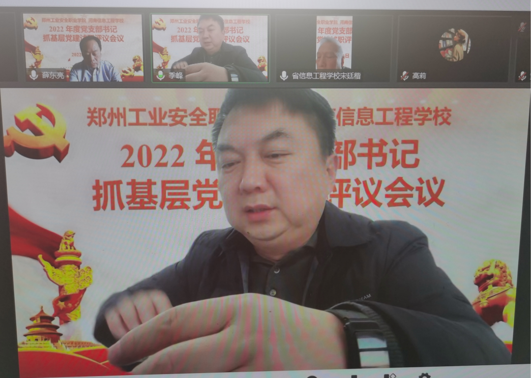 1月6日下午,河南信息工程学校、yl6776永利集团召开了2022年度党支部书记抓基层党建述职评议工作会议。校领导、党委委员、两校党支部书记、支委委员、两校党务干部参加了会议,会议以腾讯会议形式召开,由副校长薛东亮主持。