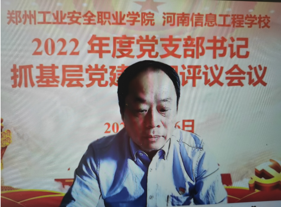 首先,党委书记宋廷楷传达《关于印发2022年度高校党组织书记抓基层党建述职评议考核工作方案的通知》(豫教工委〔2022〕160号)和《关于印发2022年度委管中等职业学校党组织书记抓基层党建述职评议考核工作方案的通知》(豫教工委〔2022〕162号)精神,并对党支部书记抓基层党建述职评议考核工作提出要求。