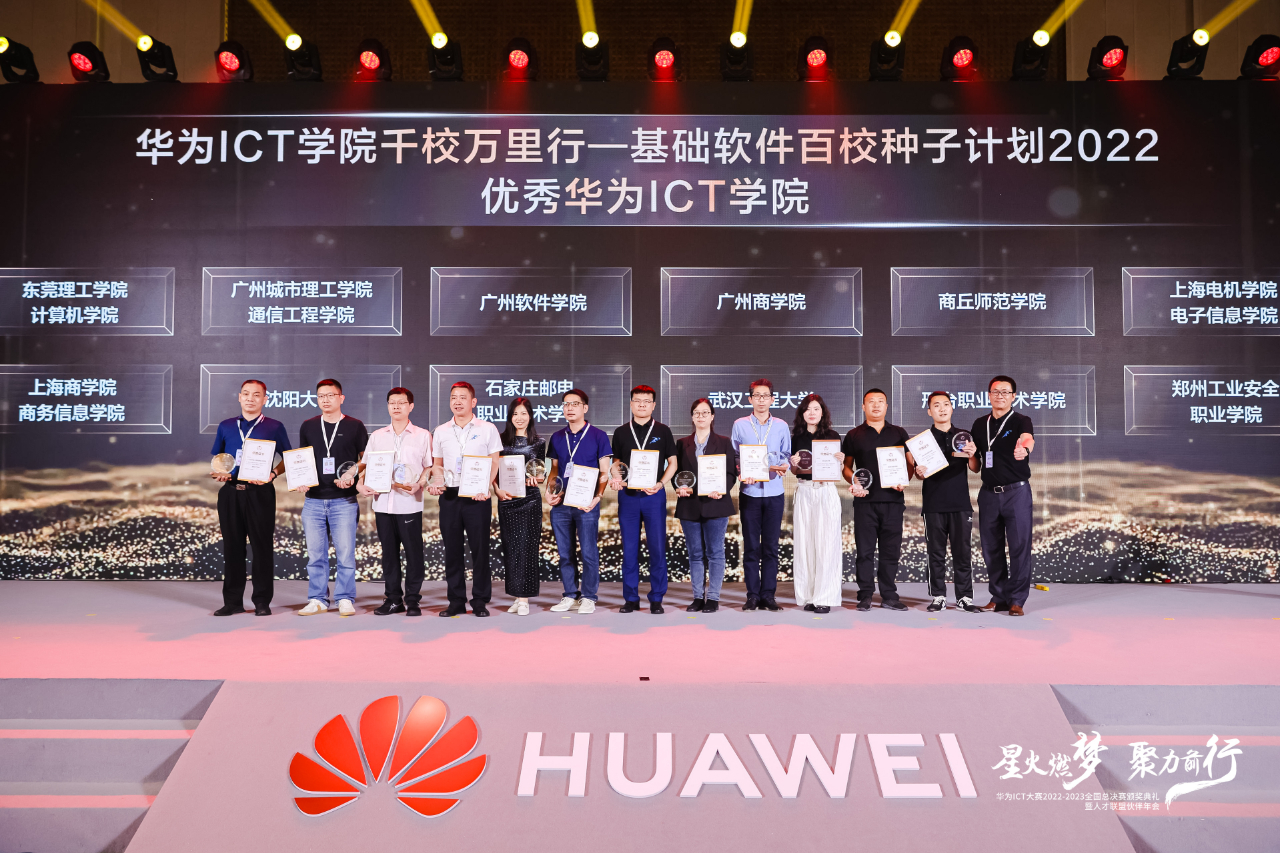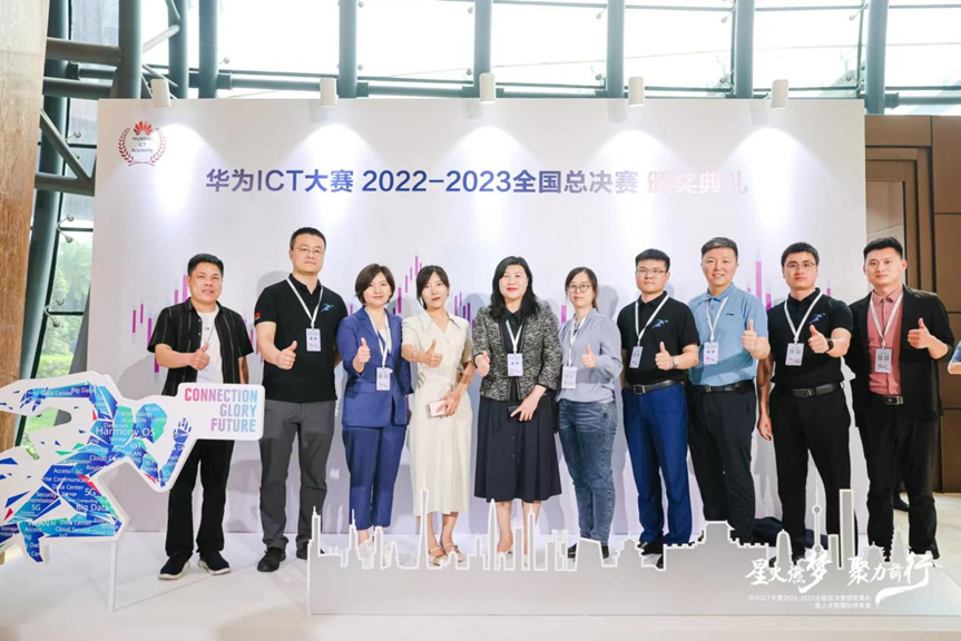 春韵冬藏,夏纳秋丹。经历了2022年秋的孕育、冬的拼搏,我校在产教融合、ICT专业建设、技能大赛等领域迎来了春的萌芽和夏的绽放。4月13日,黄磊校长受邀带队参加了华为ICT大赛2022-2023全国总决赛颁奖典礼,为我校捧回“华为ICT大赛2022-2023全国总决赛实践赛二等奖”“2022年度优秀ICT网院”“优秀ICT学院教师”三项超大奖项。