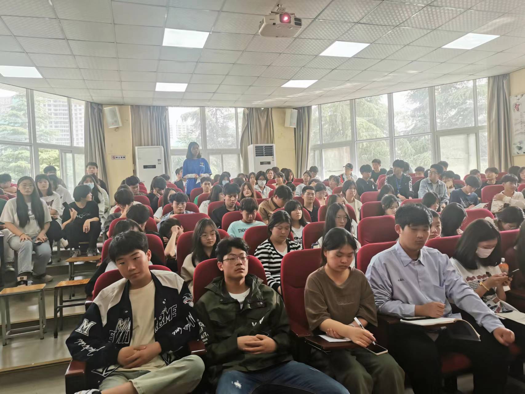 为进一步落实“以学生为本”的理念,突出“为学生服务”的宗旨,全面了解广大学生对学生管理方面的意见和建议,充分调动学生参与自我服务、自我教育,自我管理的积极性和主动性,进一步增强管理服务工作的针对性和实效性,我校学生处5月30日下午在道德讲堂召开了学生代表座谈会,各班级约有150余名学生参加了此次座谈会,座谈会由学生处李冉处长主持,陆陆铭教官团队也派了三名代表全程参会。