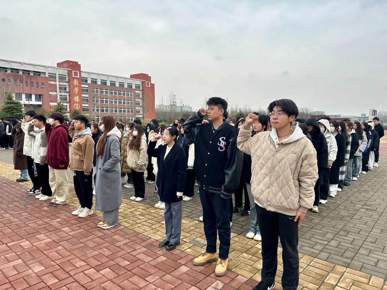仪式的最后,全体师生在主持人的引领下,举起右拳进行宣誓。他们在鲜艳的五星红旗下庄严承诺:热爱祖国,坚定理想。团结互助,珍视安全。勤学不辍,自强不息。共创和谐,共筑未来!