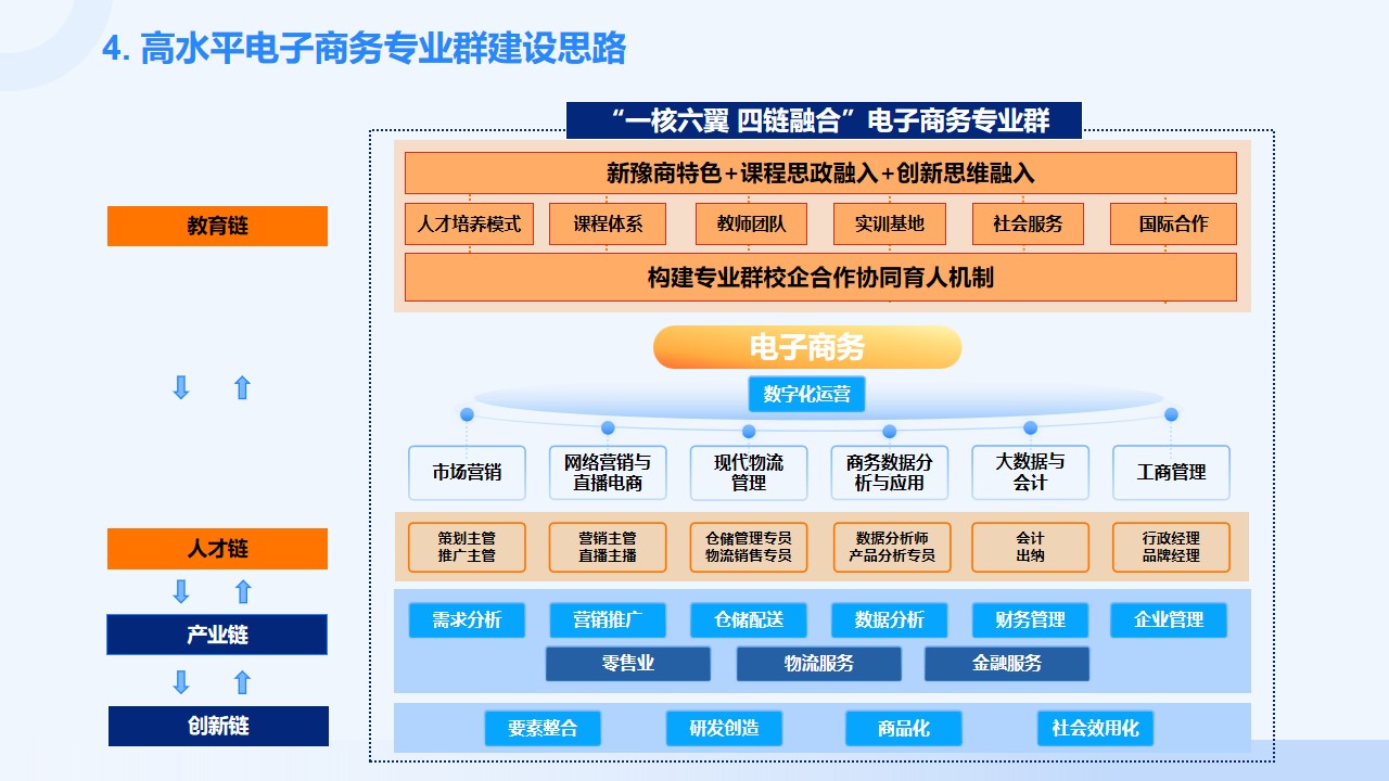 尹顺丽主任详细介绍了数字经济与管理系自2023年成立以来,在师资、实训基地、校企合作及专业成果等方面取得的坚实基础。她基于数字经济与管理系专业发展基础,以高水平电子商务专业群建设为目标,阐述了“一核六翼 四链融合”的专业群组结构,并围绕人才培养、教学模式创新、教学资源建设等方面提出了具体目标。她强调,通过“一特二融三阶”的人才培养模式,将全面提升学生综合素质与职业能力,这同时也体现了yl6776永利集团紧跟国家发展战略、服务地方经济发展的决心和行动。