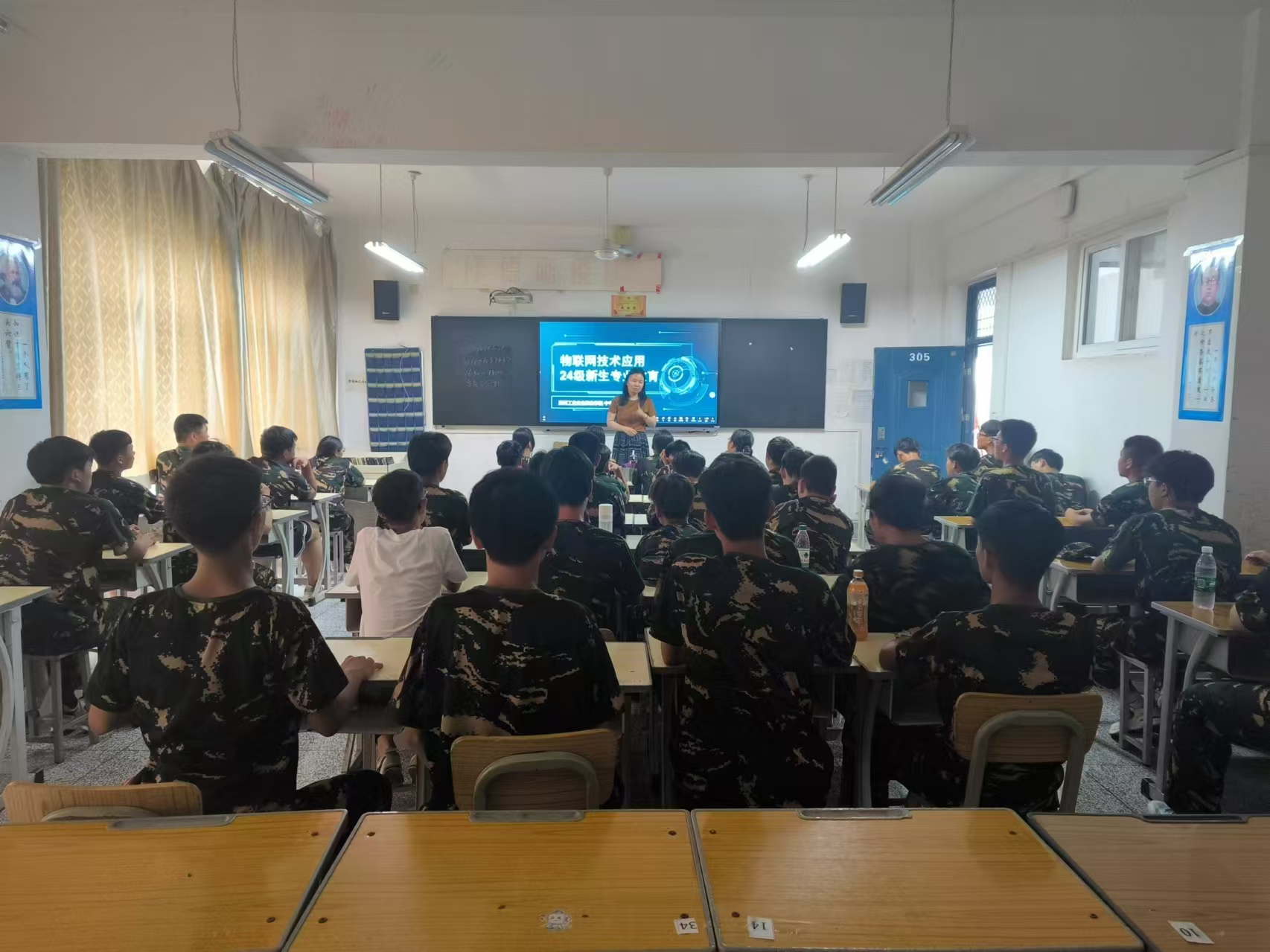2024年9月3日,我院信息工程系24级中职新生的专业教育活动于北校区一号教学楼305教室隆重举办。此次活动由信息工程系副主任郭蕊担任主讲,24级物联网技术专业的中职新生积极参与。