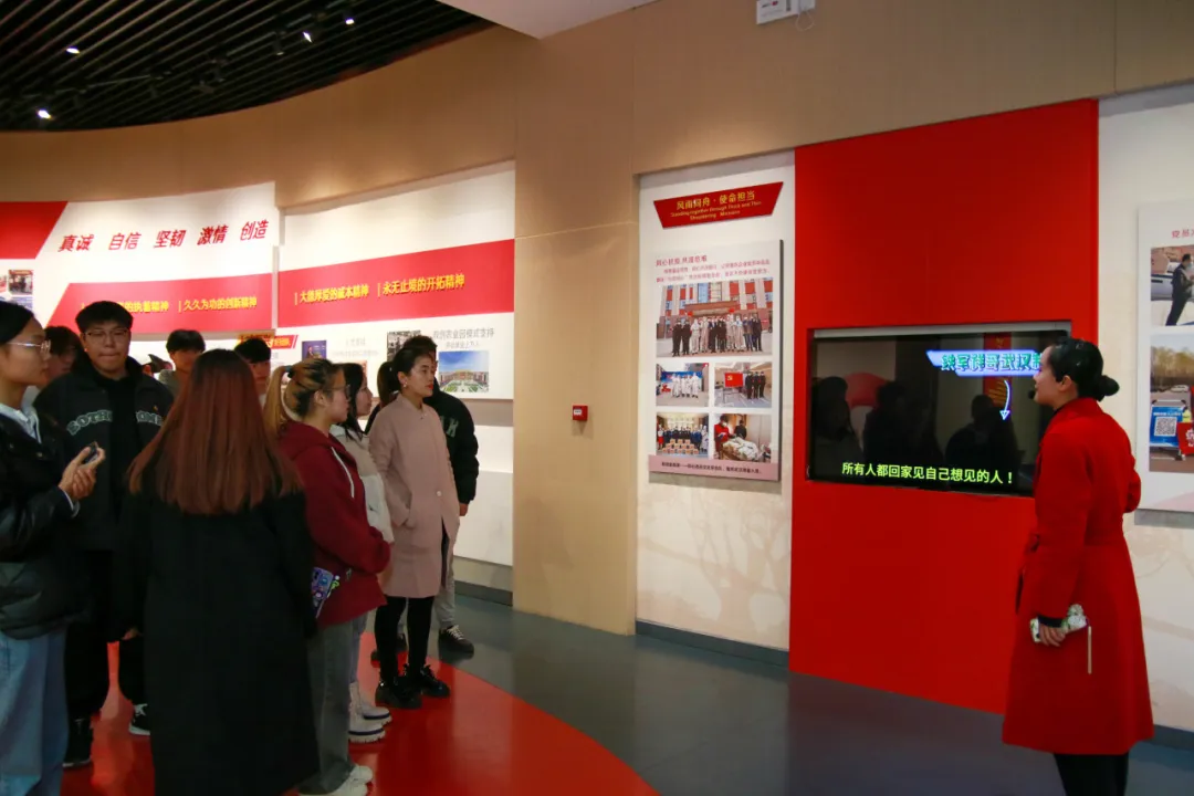 我校团员青年首先参观了以精神红、物质红、信仰红贯穿的党建博物馆,探寻红枣历史,品味新郑本地的红枣文化。通过春发之树、夏长之树、秋实之树、冬蕴之树的四季创意展厅、红枣文化展厅、枣木根雕艺术馆,让大家从1978年裴李岗文化遗址出土的一枚8000年前的碳化枣核中,走进了红枣世界的大门。参观队伍紧跟讲解员的步伐,不时驻足观看,透过一张张照片,穿过一道道展廊,回顾我党在各个时期的艰苦历程和伟大成就,感受百年岁月间那些弥足珍贵的历史瞬间,也深刻理解了“以史为鉴、秉承初心”的丰富内涵。
