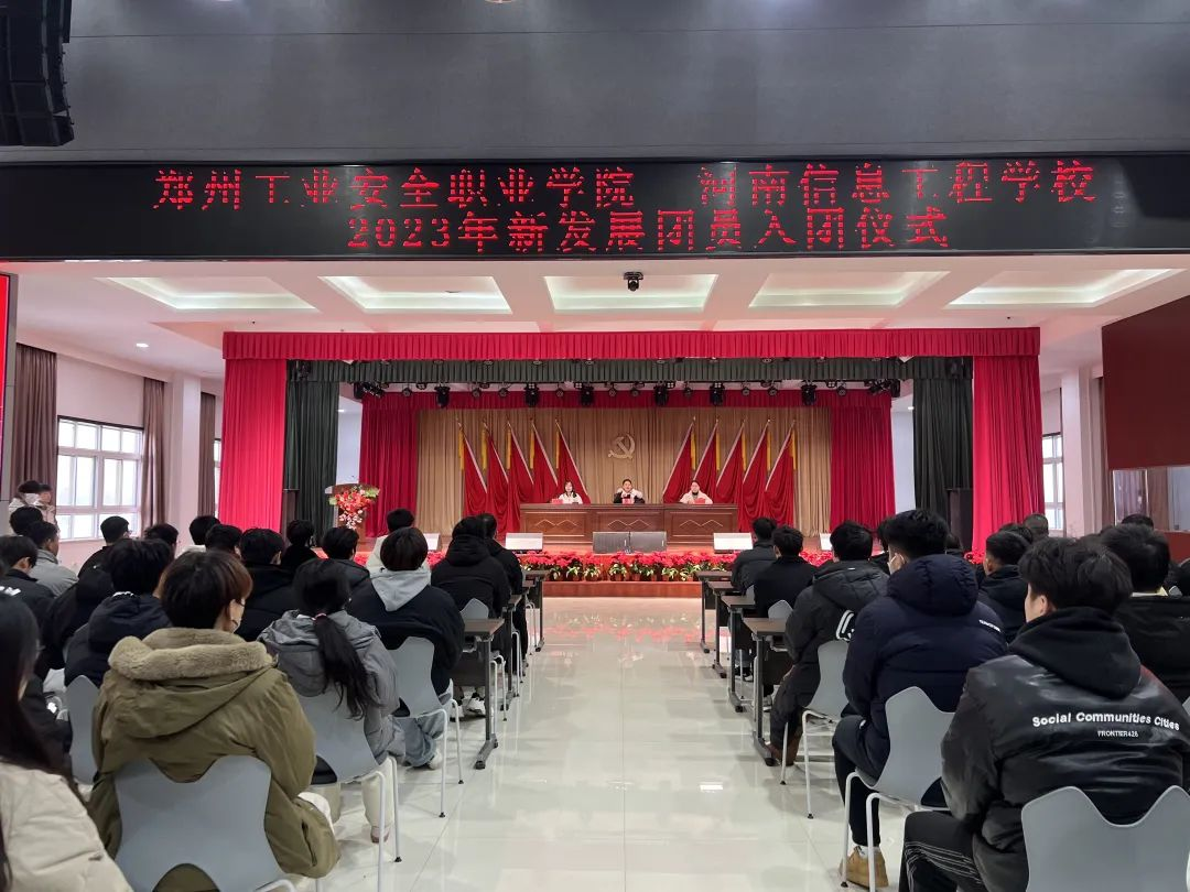 为落实共青团中央关于认真学习宣传贯彻习近平总书记重要讲话精神,动员引领广大团员青年在强国建设、民族复兴伟业中挺膺担当,我校团委于12月12日在五楼报告厅举行2023年新团员入团仪式。仪式由团委陈晨老师主持,团委李丹老师、北校区团委组织干事马浩琼老师及两校179名新团员参加了仪式。入团仪式在雄壮的国歌声中拉开帷幕。