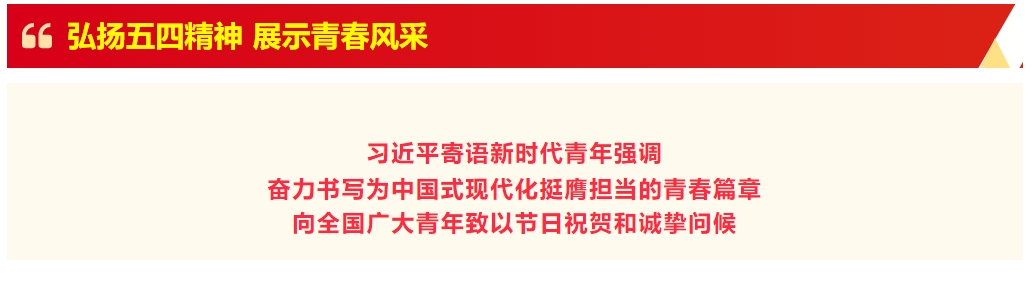 在五四青年节到来之际,中共中央总书记、国家主席、中央军委主席习近平代表党中央,向全国广大青年致以节日祝贺和诚挚问候。