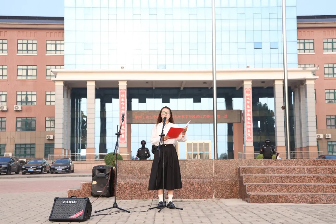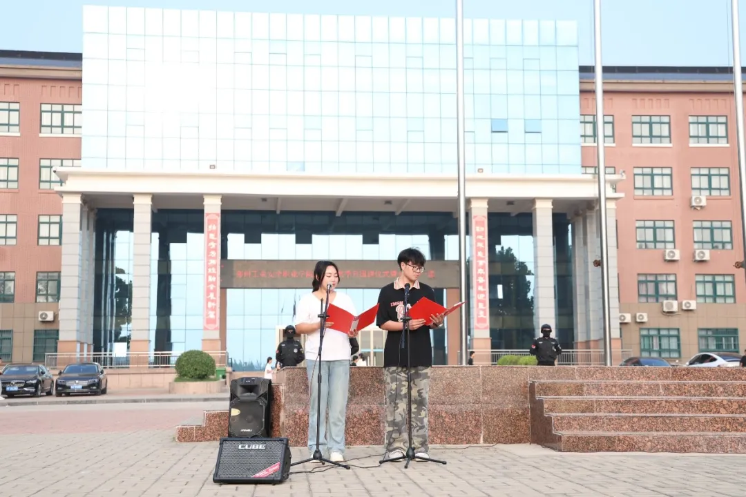 2023级学生代表、校学生会轮值主席万茜在国旗下以《以实践之行 赴青春之约 做出彩大学生》为题演讲。她表示会将个人发展与国家战略、时代需求相结合,为奋力推进中国式现代化建设河南实践贡献青春力量,努力成为堪当民族复兴重任的时代新人!